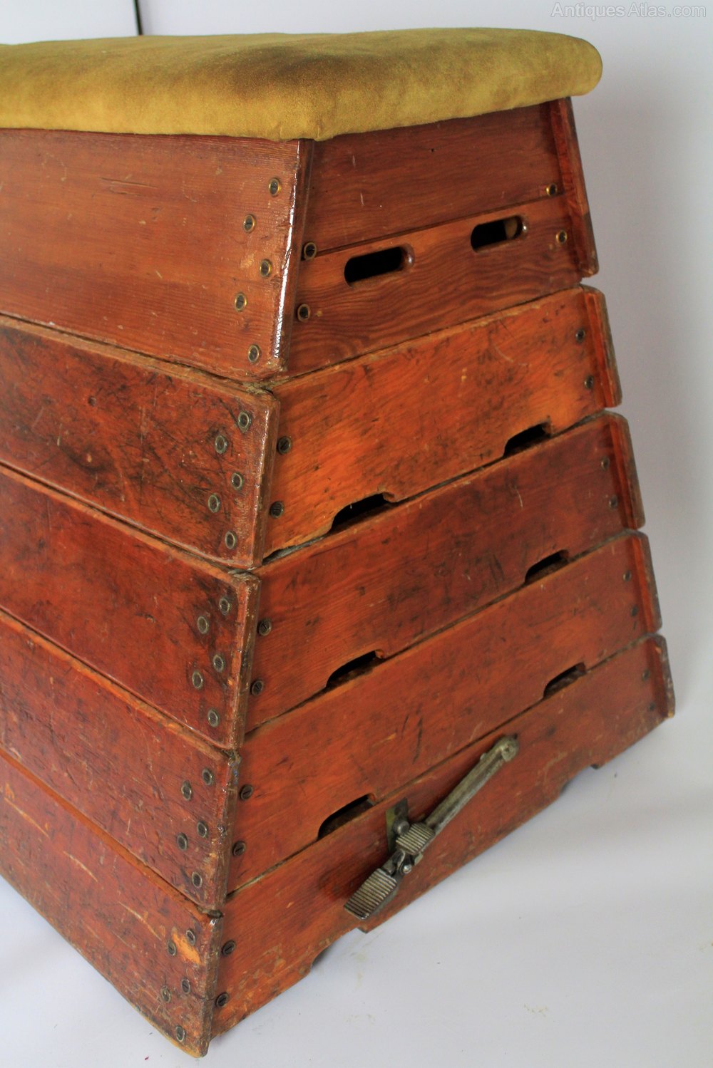 Vintage pine 5 section vaulting horse. with suede topgood original condition