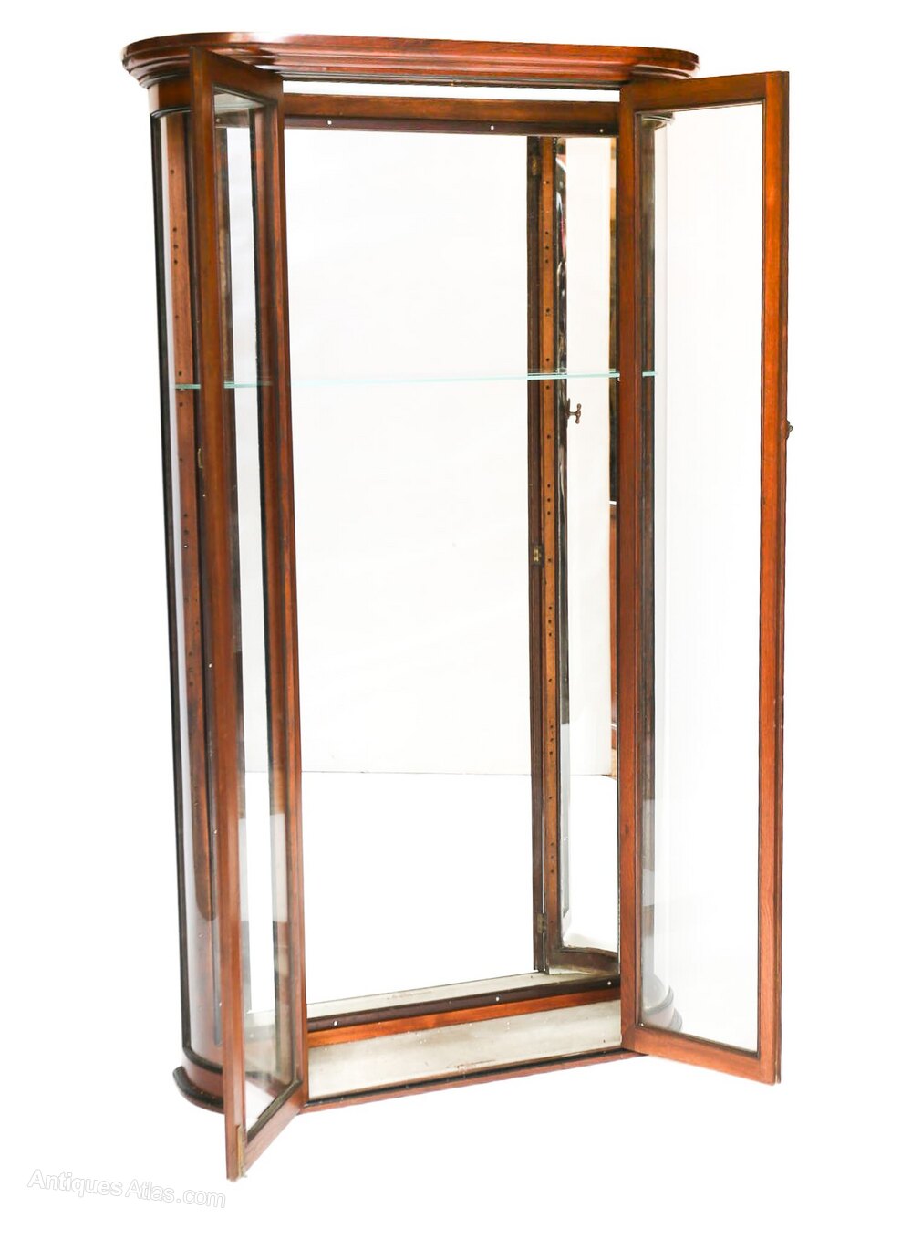Victorian Mahogany Bow sided shop display Cabinet,Mahogany Moulded Cornice,