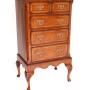 Queen Anne Style Burr Walnut 5 Drawer Chest Circa