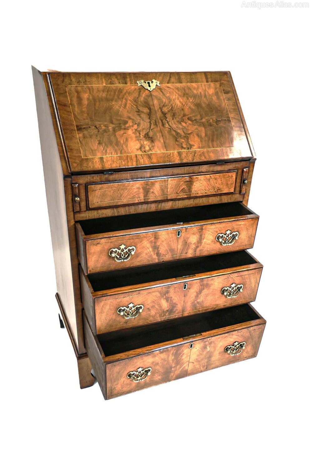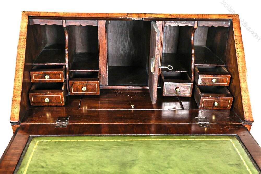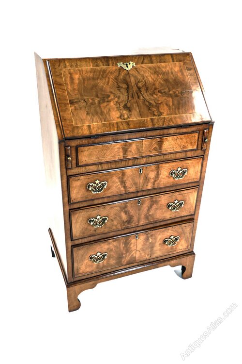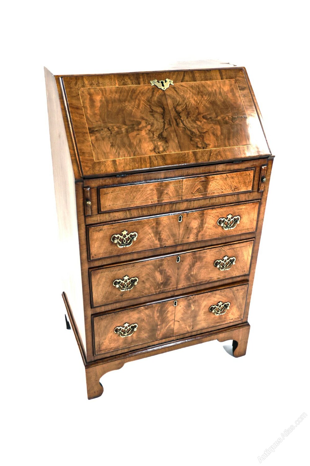 Queen Anne Style Walnut Bureau with drp well, circa 1920sPlain Figured walnut on top & Sides