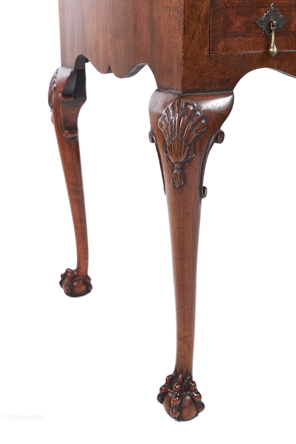 Sitting on 4 Cabriole shaped legs, with shell carving on knees & carved claw & ball feet,