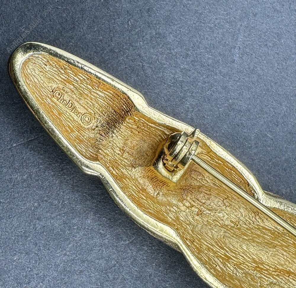 We have for sale a truly lovely large 1980s Christian Dior gold plated brooch.This statement piece large gold plated rope design brooch is 3.7 inches long (9.4cm) long and is finished with a with a pin and rollover clasp to the reverse. The back of the brooch is signed in two places, Chr.Dior© at the left hand end and Germany at the right hand end indicating that the brooch was manufactured for Christian Dior by Henkel & Grossé at their factory in Pforzheim, Germany. The association between Dior and Henkel and Grossé was formed in 1957 and continued right up until 2006 when the factory in Pforzheim was taken over by Christian Dior.