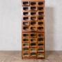 Product Details:Enhance your space with this exquisite Vintage 1950s Haberdashery Cabinet. This unique piece splits into two sections and features 36 glass-fronted doors, offering ample storage and display options. The cabinet includes a pull-out shirt slide, perfect for folding and organising shirts, making it both functional and stylish.