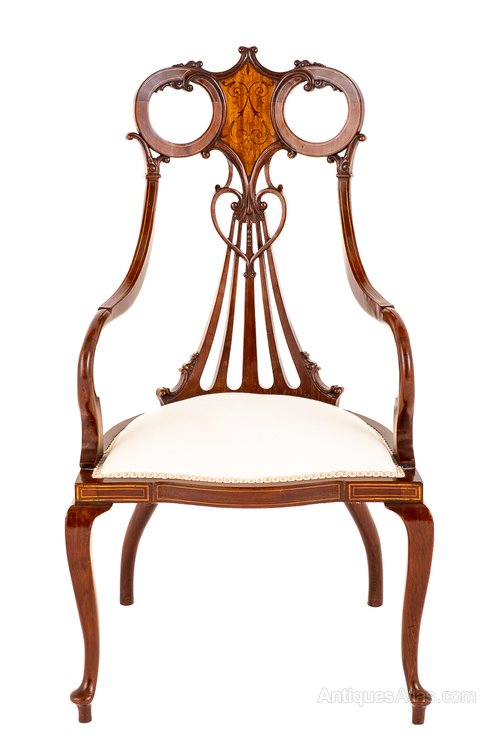 This Very Stylish Art Nouveau Chair is Raised Upon Shaped Legs.Featuring Elegant Scrolling Arms.