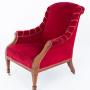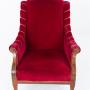 Upholstered in a plush velour, the chair offers both comfort and period charm.