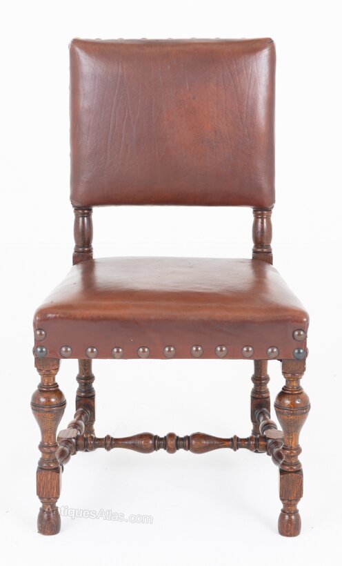 Each chair is raised upon ring-turned legs, united by ring-turned stretchers providing both strength and stability.