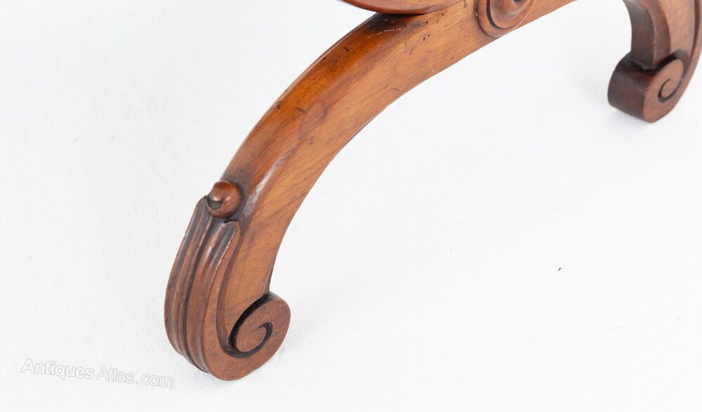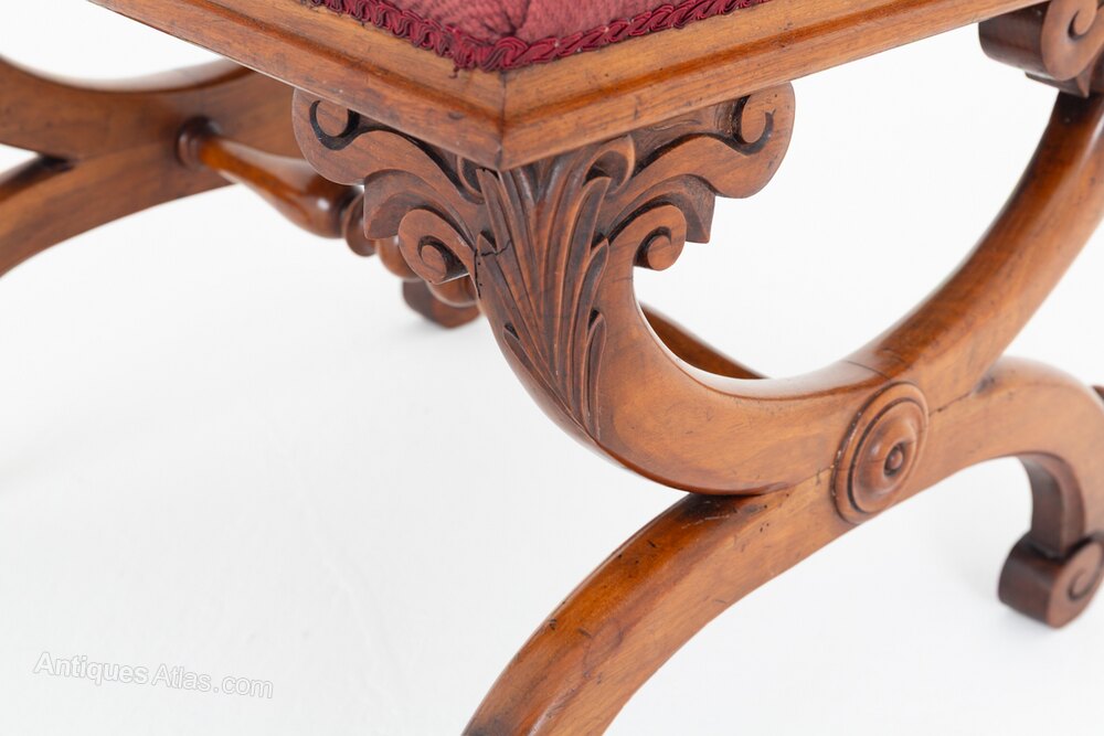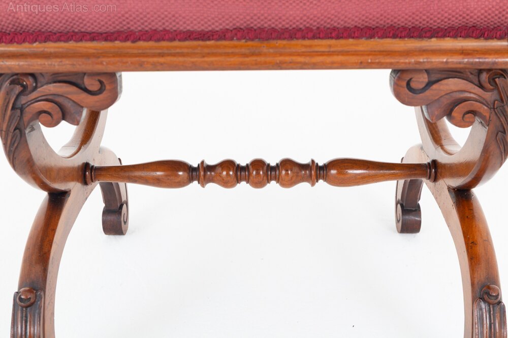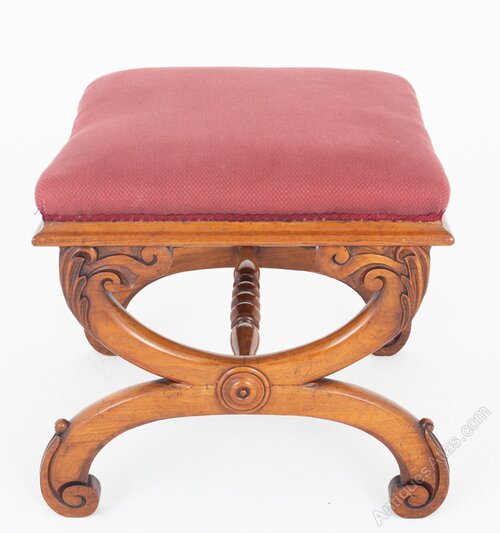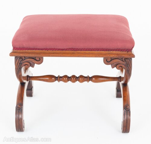 William IV Mahogany Stool.This pretty William IV stool is raised upon cross-section carved end supports, united by a ring-turned stretcher.