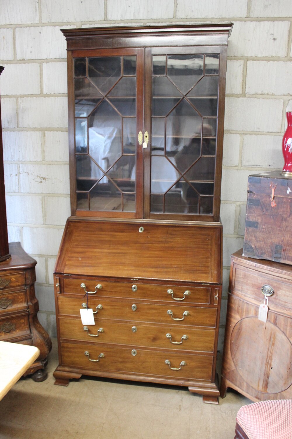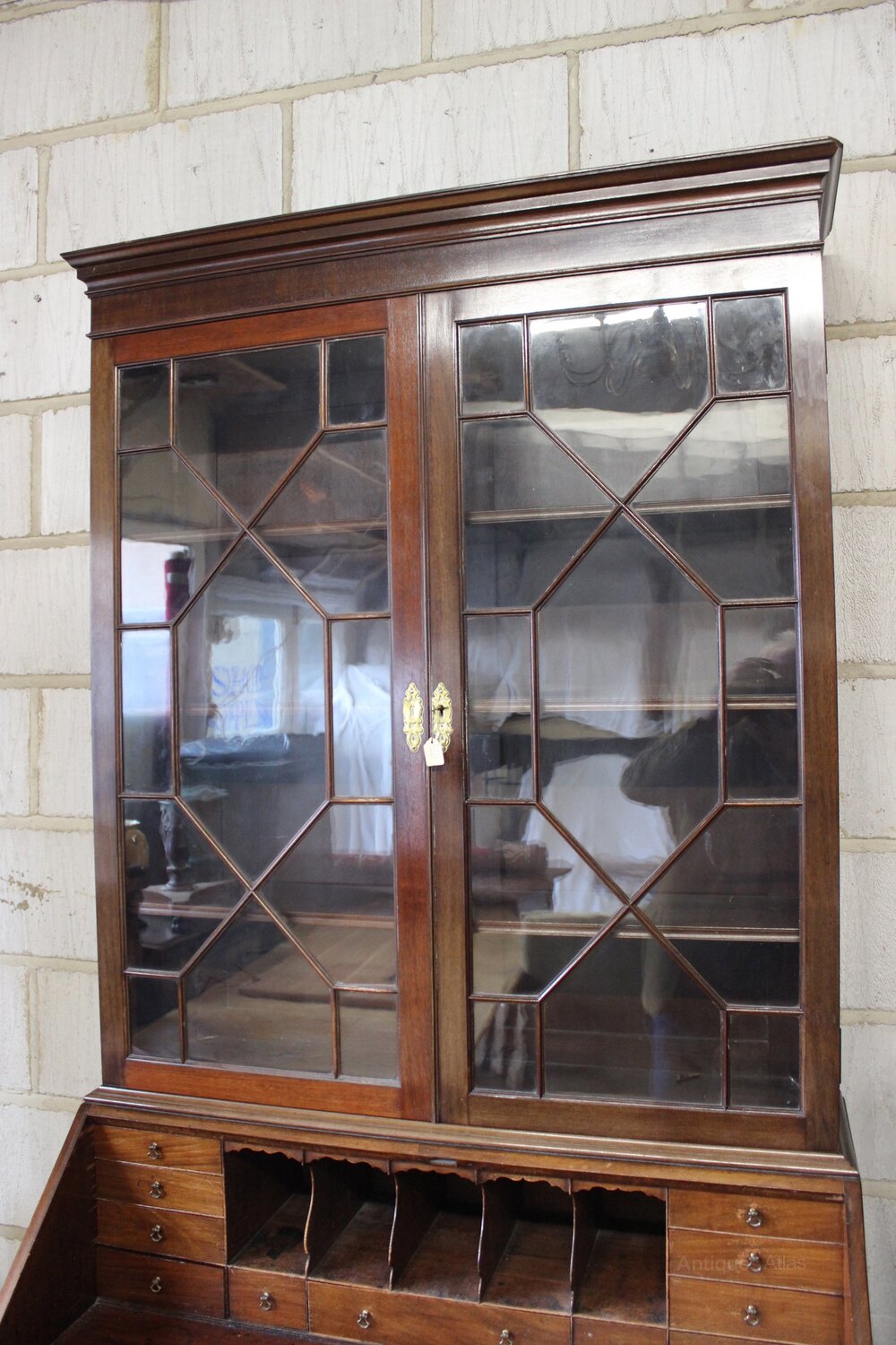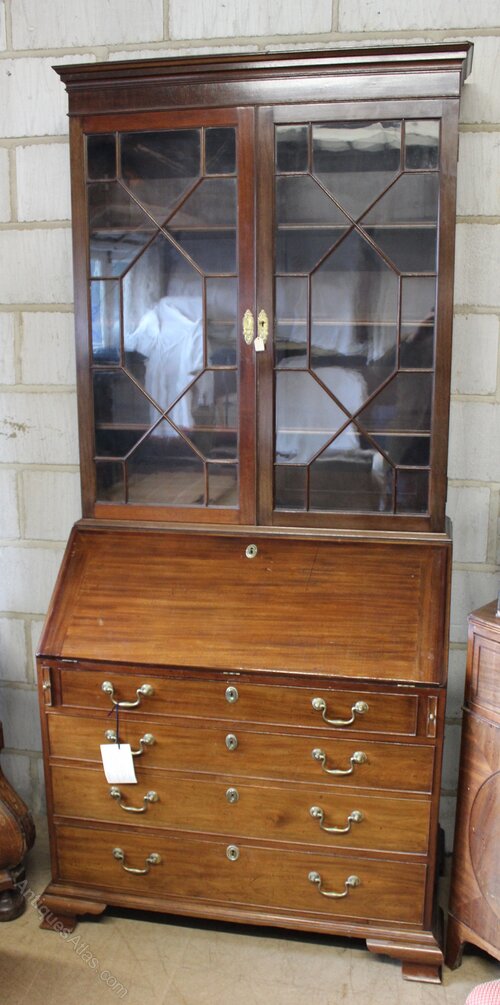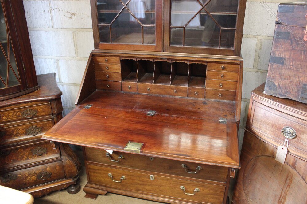 19thc. Mahogany Bureau BookcaseWith glazed bookcase above & graduated