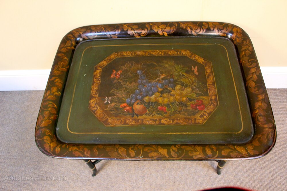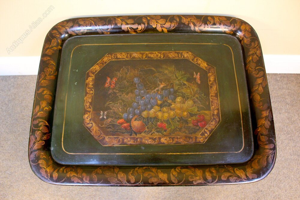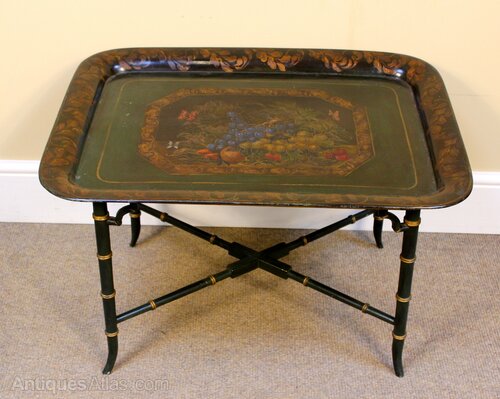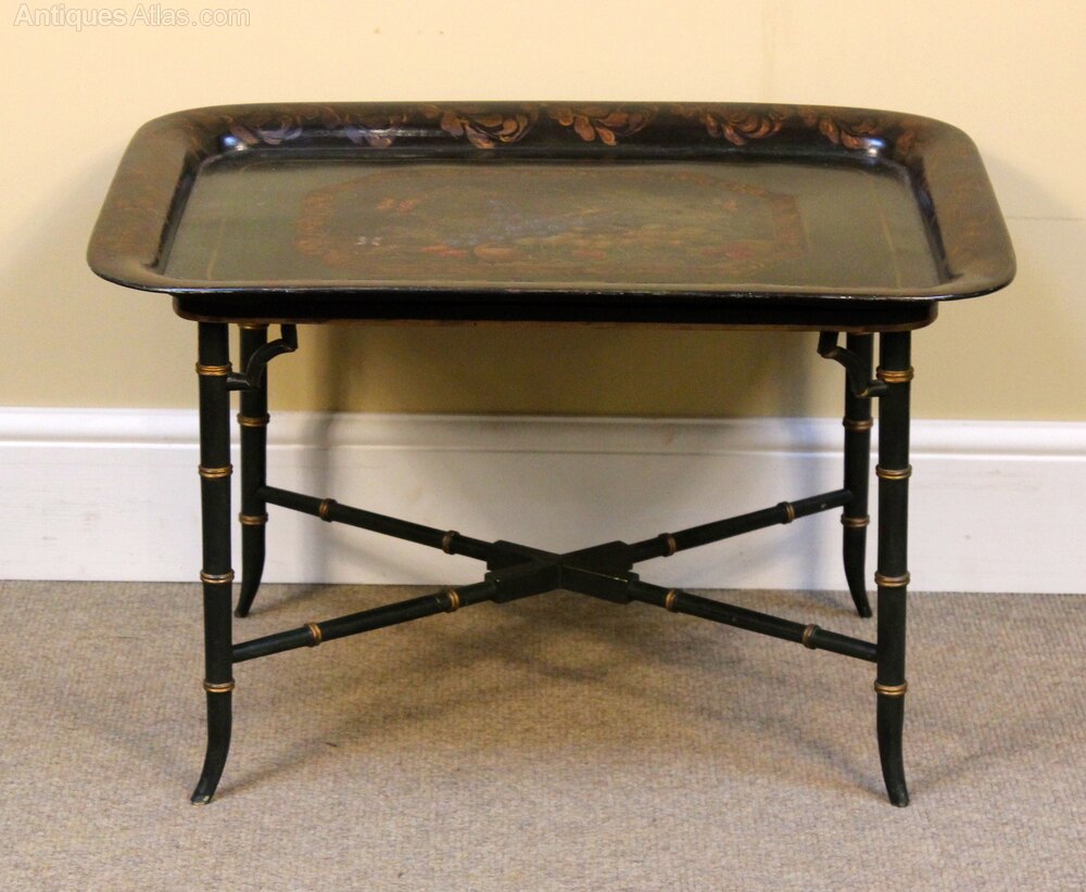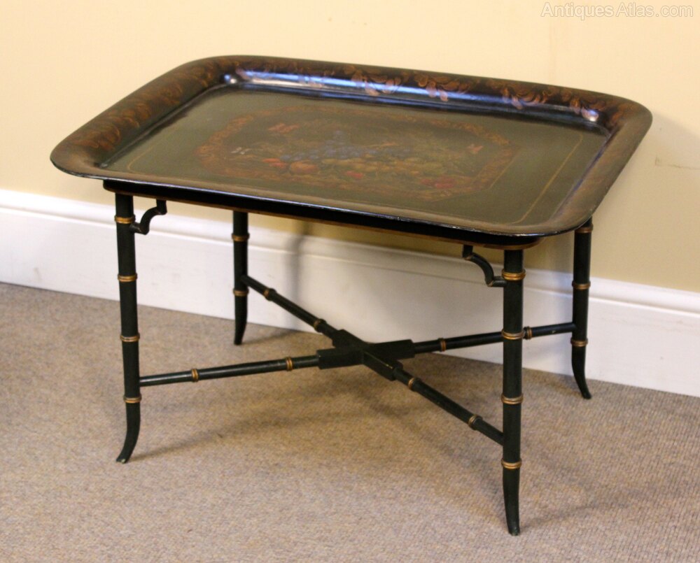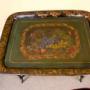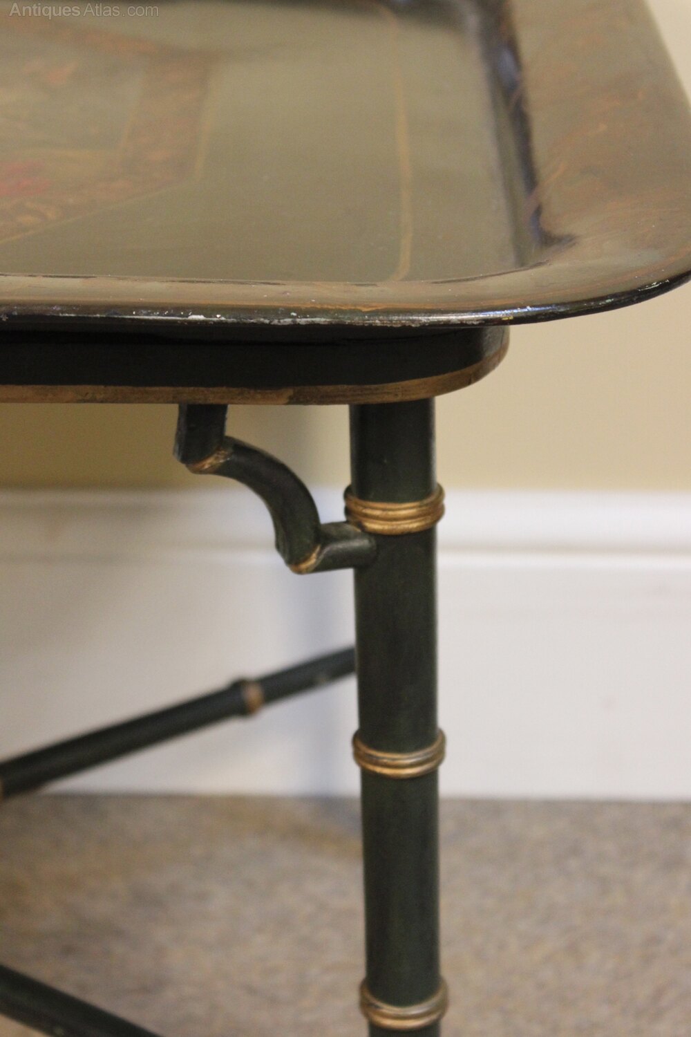 19thc. Painted Tin Toleware TrayOn later faux bamboo stand gilded &