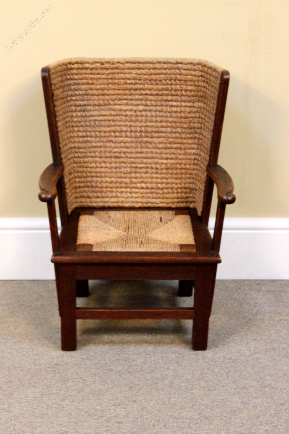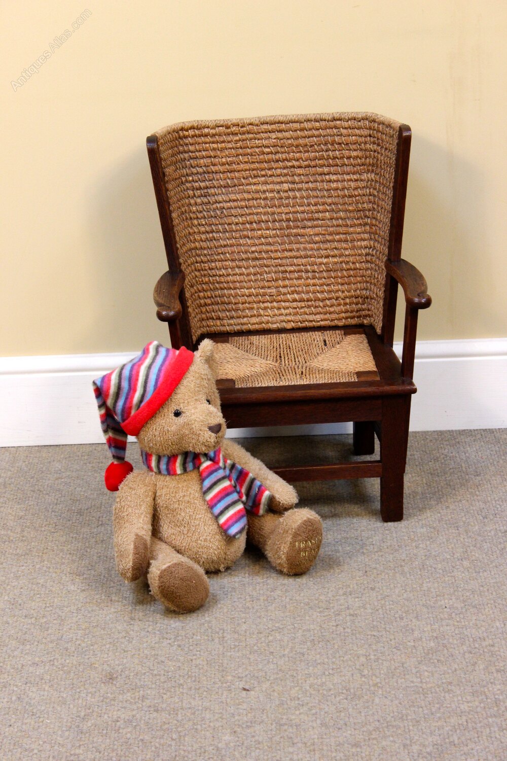 A 19thc. Child’s Orkney ChairWith oak frame, woven back