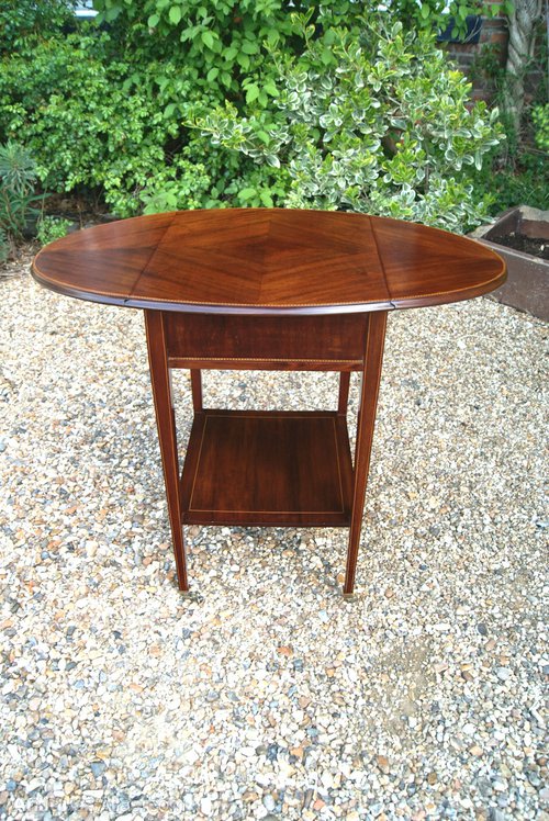 Mahogany & Inlaid Small Oval Pembroketable