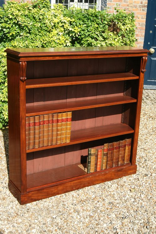Fine quality and generously proportioned Victorian mahogany open bookcase with three original adjustable shelves, raised on a plinth base, and having its original panelled back.DateMid Victorian :