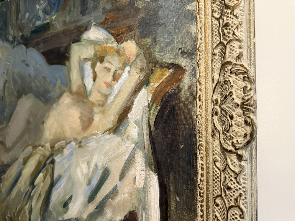 Imagine being transported to the luxurious interiors of Wilfrid's studio, where his muse, the elegant Barbara, posed effortlessly on a sofa adorned with chintz and delicate fabrics. The rich colors and intricate details in his paintings reflect a mastery of technique reminiscent of the great John Singer Sargent.
