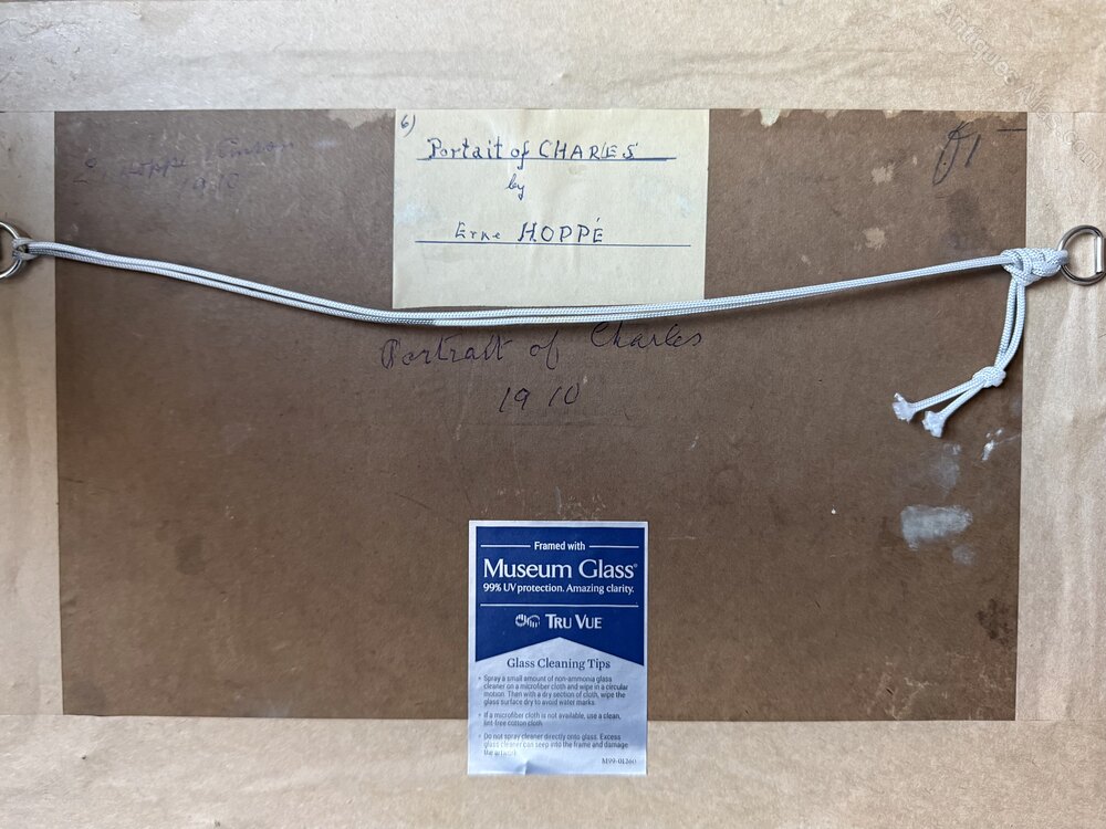 oil on card, signed, titled and dated on the reverse 'Erna Hoppe Portrait of Charles 1910