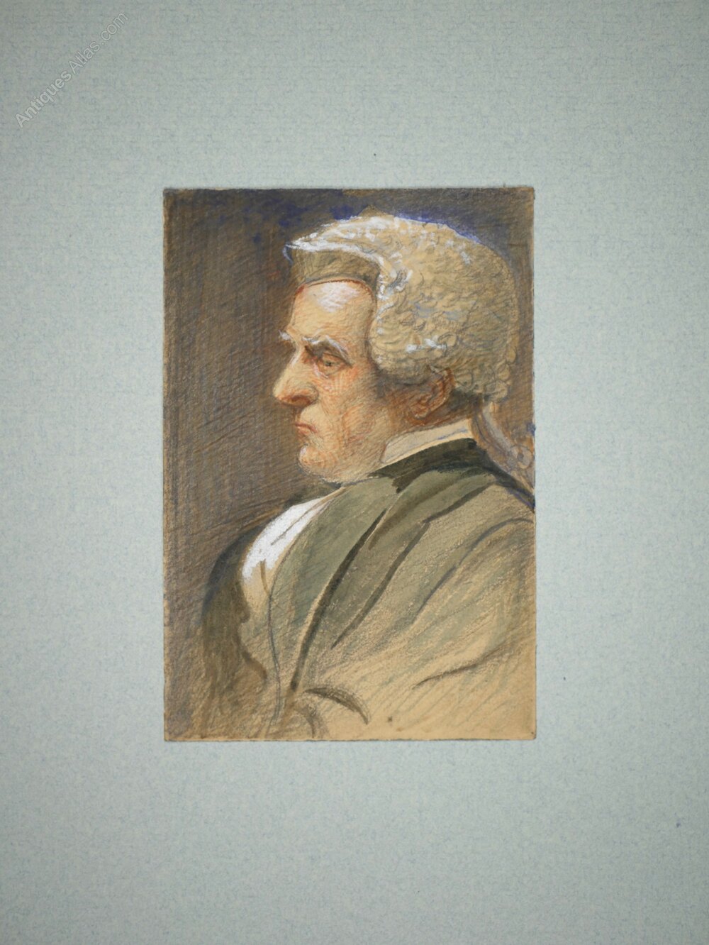 James Smetham (1821-1889)– In Court of ProbateGraphite/pencil ink and watercolour with gouache on buff paper. Backing paper: Blue Ingres, laid. Presented in a clear archival acid-free polyester sleeve.
