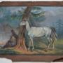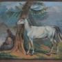 There are slight variations between the painting and the print. In the painting there are no soldiers in the background the owners branded monogram on the rear of the horse is more clearly visible and positioned higher than the printed version, also the Cossack is not resting on a saddle or coat as is shown in the print.
