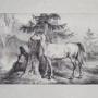The Lithograph: Described in the catalogue lithographic works by Mr. J. E. Horace Vernet, published Paris July 1826: No.109 Cossack seated at the foot of a tree, and smoking – his unsaddled horse is tied behind him to the tree against which he is leaning -, in the background we see other soldiers.