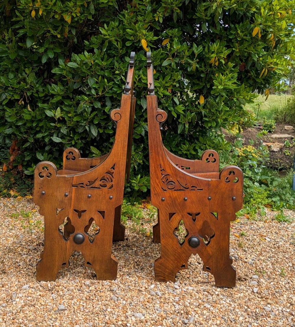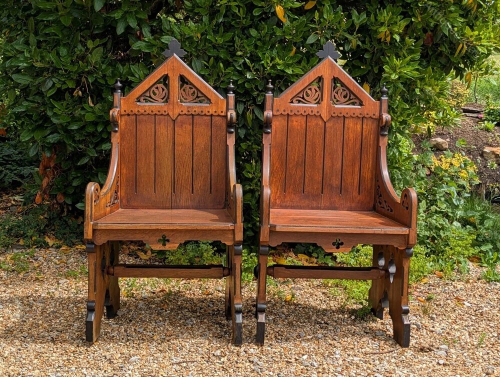 Pair of Gothic Oak Armchairs 19th Century