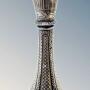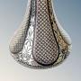 It features stunning silver or brass inlay work against a uniquely blackened zinc and copper alloy surface. This intricate art involves molding, engraving, and oxidizing, creating decorative items like vases, boxes, and jewellery.