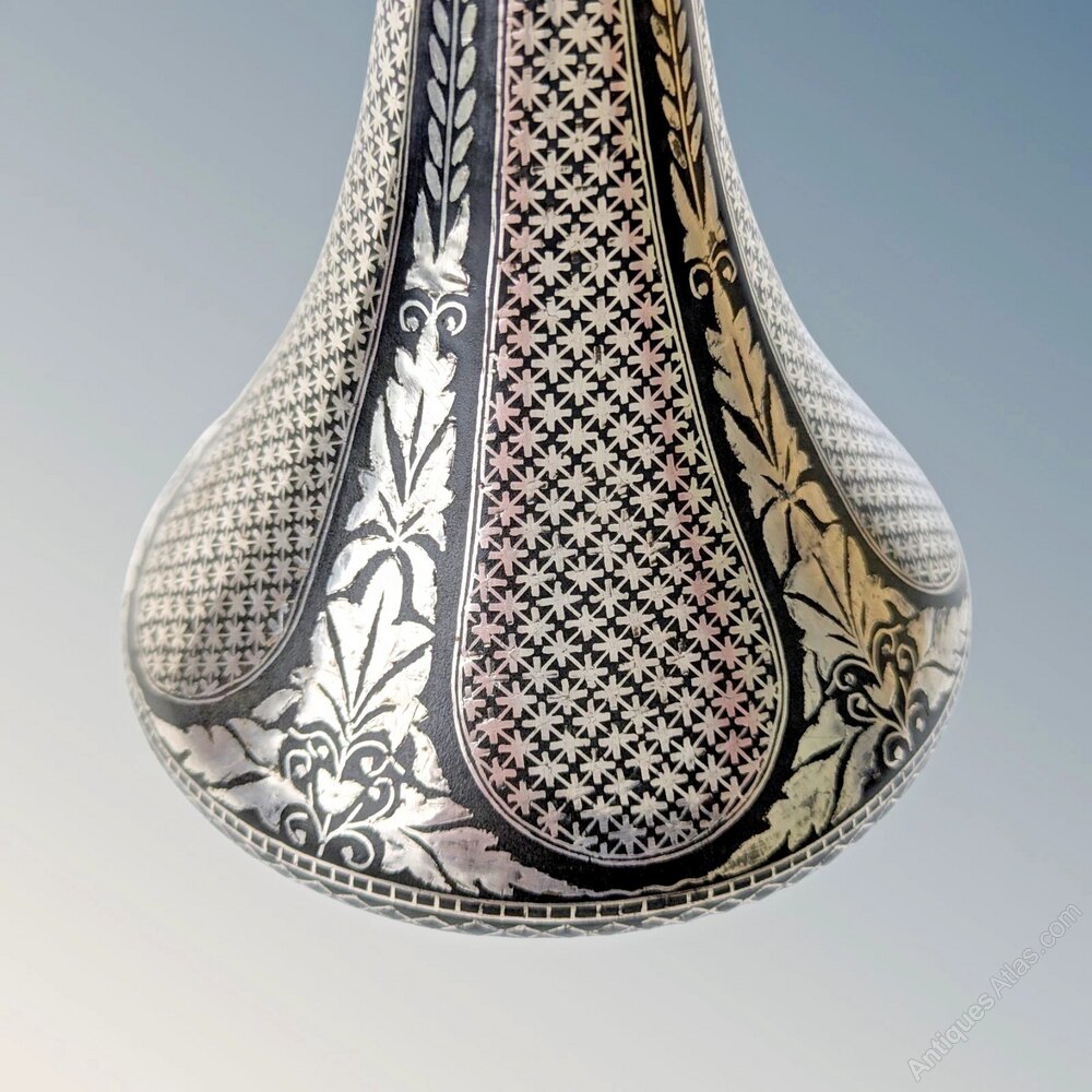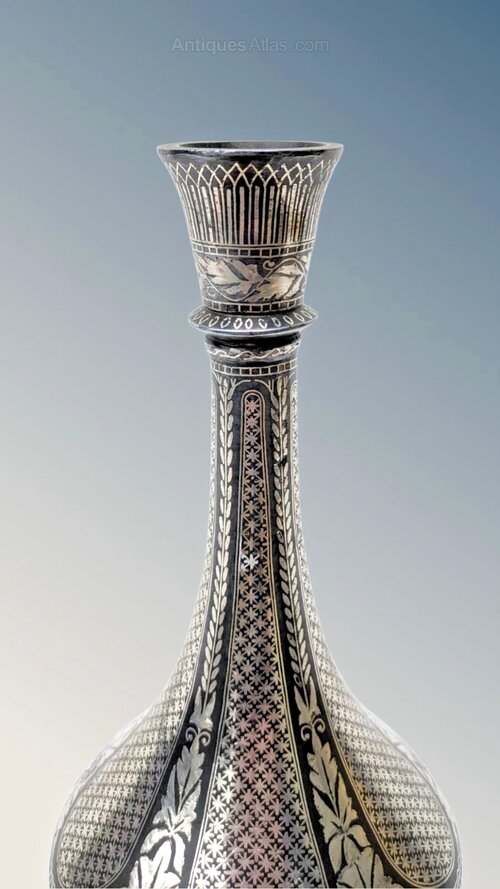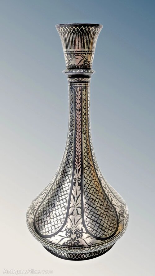 This is a beautiful 19th century Indian silver Bidri ware vase in excellent condition dating from around 1900.Bidri ware is a 14th century, historically rich Indian metal handicraft originating from Bidar in Karnataka.