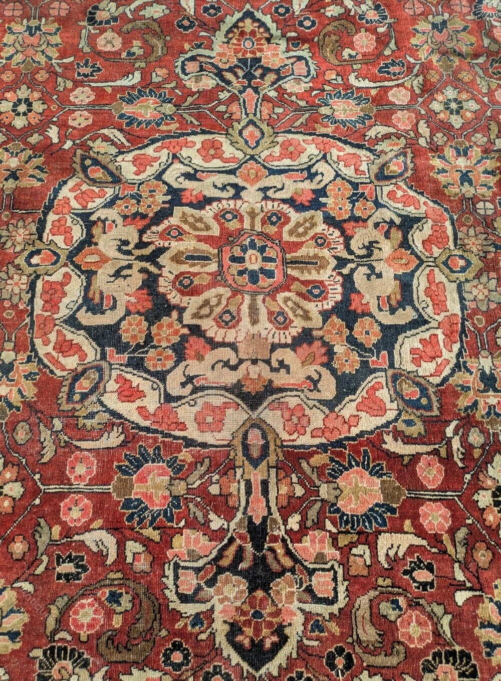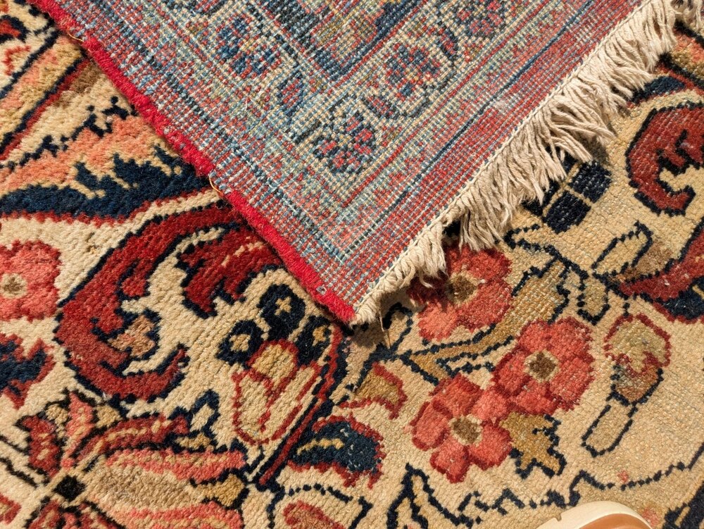 The carpet is in good useable order overall with some even wear and it has had the odd repair done over the years. The ends are complete and in good order with slight losses to the fringes and the carpet has some small areas of wear to the selvedges.