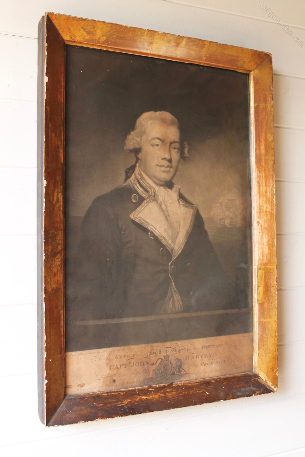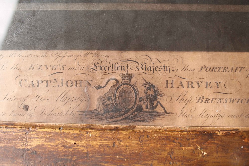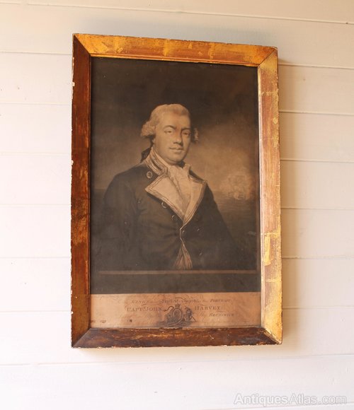 18th c engraving of Capt Harvey RN original frame