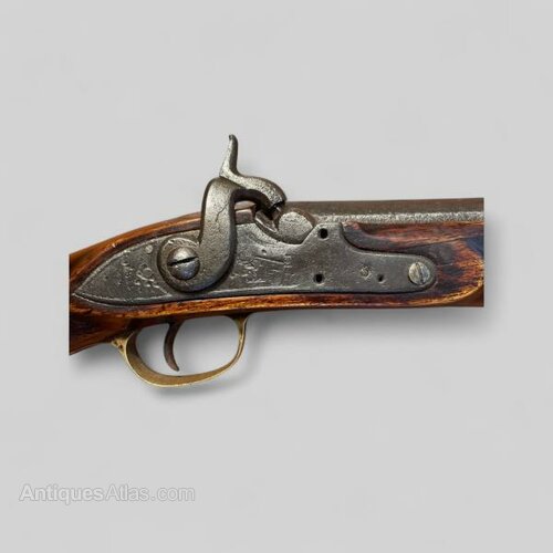 Walnut stocked iron barrelled blunderbuss converted from a flintlock to percussion, has brass furniture the steel ramrod may not be original. Fully working action engraved with a lion dated circa 1811. In good all round condition , signs of usage and wearA good decorative piece, not usable, 79cms length