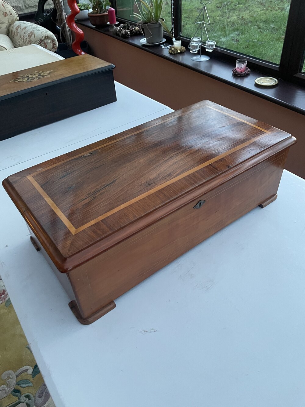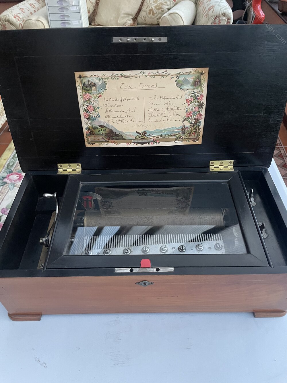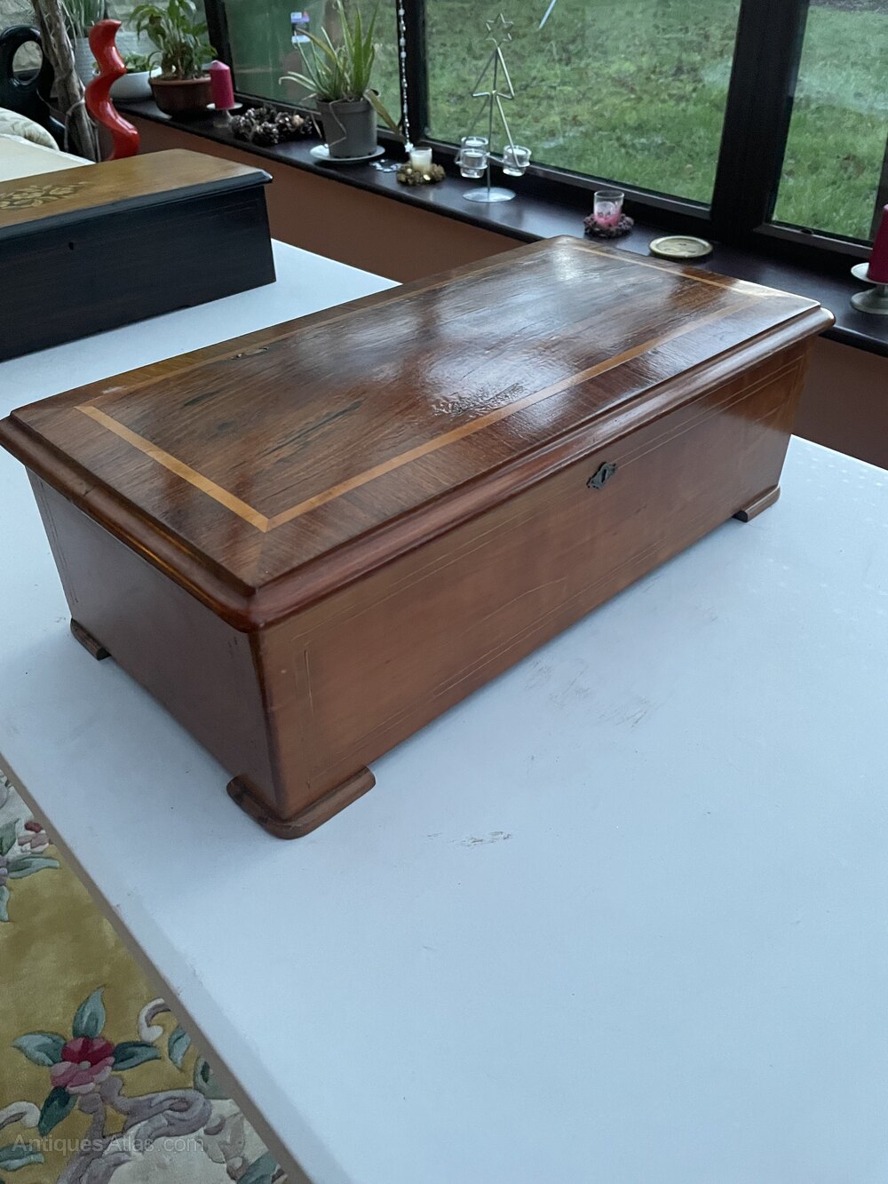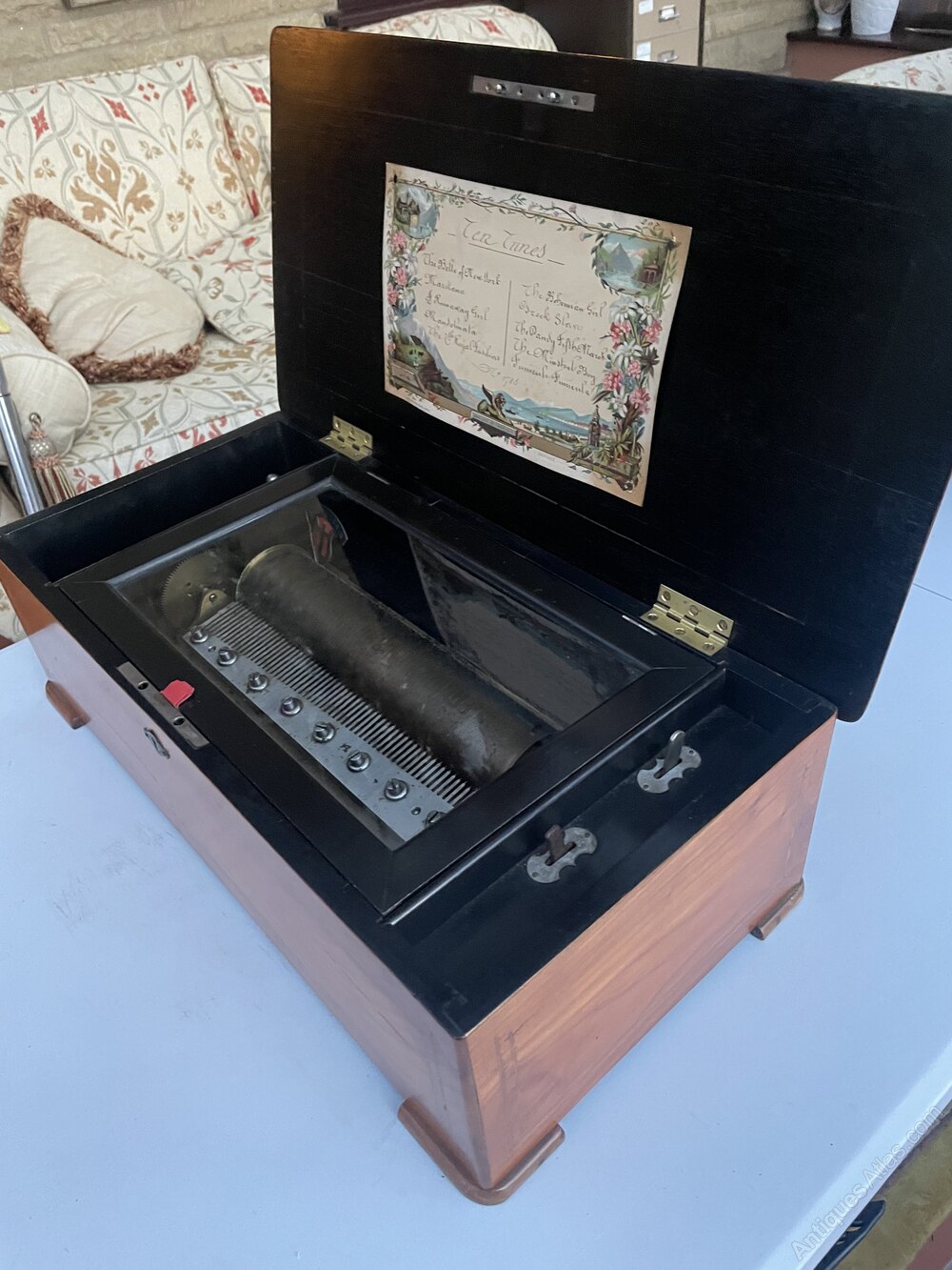 A Beautiful 19th Century Swiss music box within a rosewood cross banded case, in good working condition, the sound is absolutely wonderful playing ten airs with music sheetWe can also arrange delivery to many countries worldwide, please get in touch for a quote.