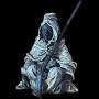 This Nubian man, from the North African area wears traditional clothing and is in a seated position holding his rifle