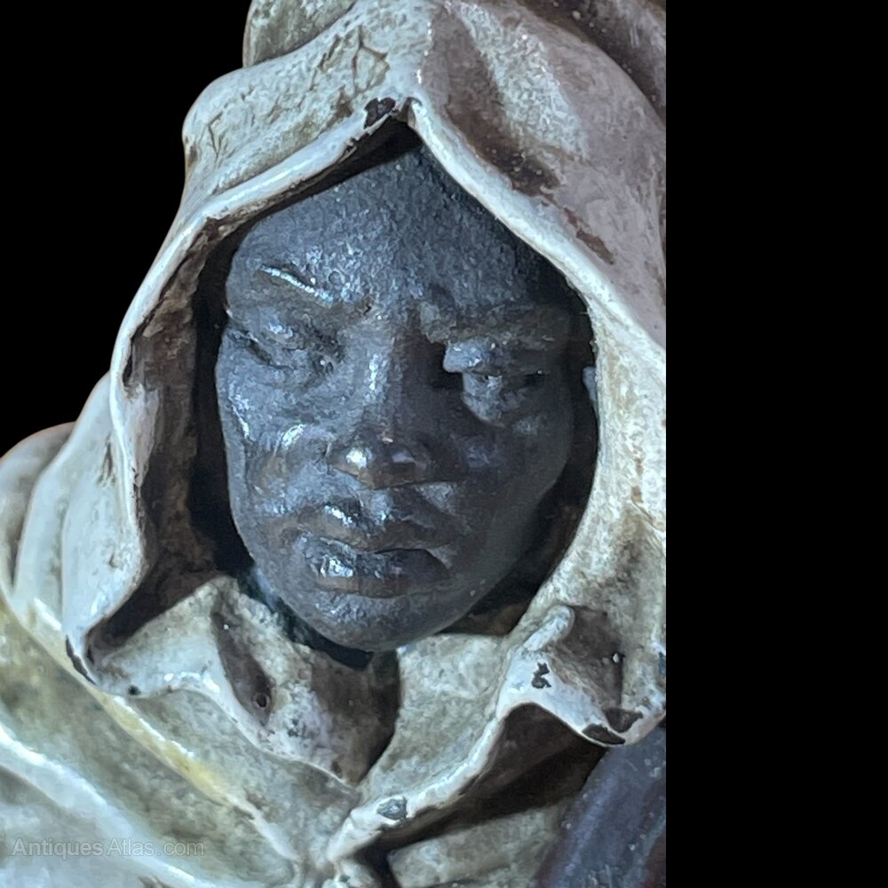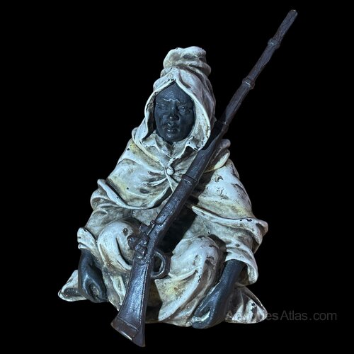 Cold painted Bronze Nubian figureA 20th century decorative cold painted bronze Nubian figure in the Bergmann style, there it is stamped Austria and a B within an amphora