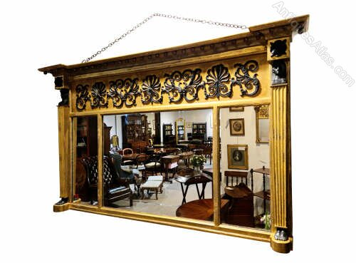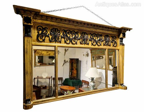 A Regency giltwood and gesso overmantel mirror with Egyptian patterned supportsShipping information
