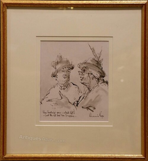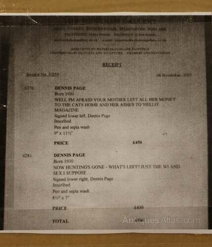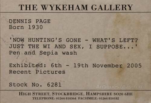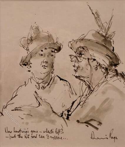 Dennis Page b. 1930Original pen and ink with wash cartoon titled " Now huntings gone - whats left? Just WI and sex I suppose."