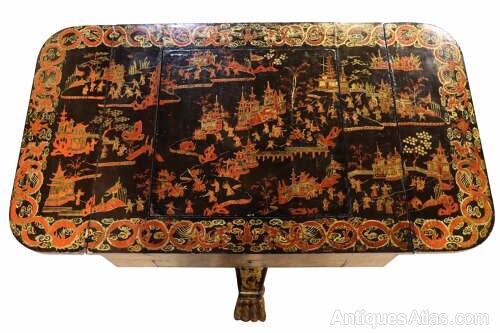 Highly Decorative 19th Century Lacquered Drop-Leaf