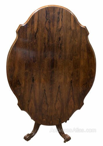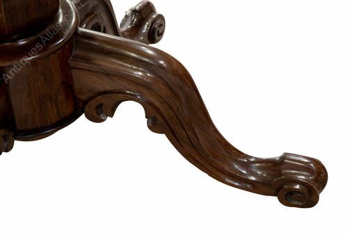 A fine mid-19th century shaped oval rosewood centre table, dating to around 1860. The beautifully figured rosewood top is elegantly moulded and sits above a bold octagonal column, supported on a four-splayed base with scrolled feet and original castors.The table retains a rich, well-patinated finish, highlighting the quality of the rosewood grain and the craftsmanship of the period. The tilt-top mechanism remains in good working order, allowing the table to be conveniently stored or displayed upright.