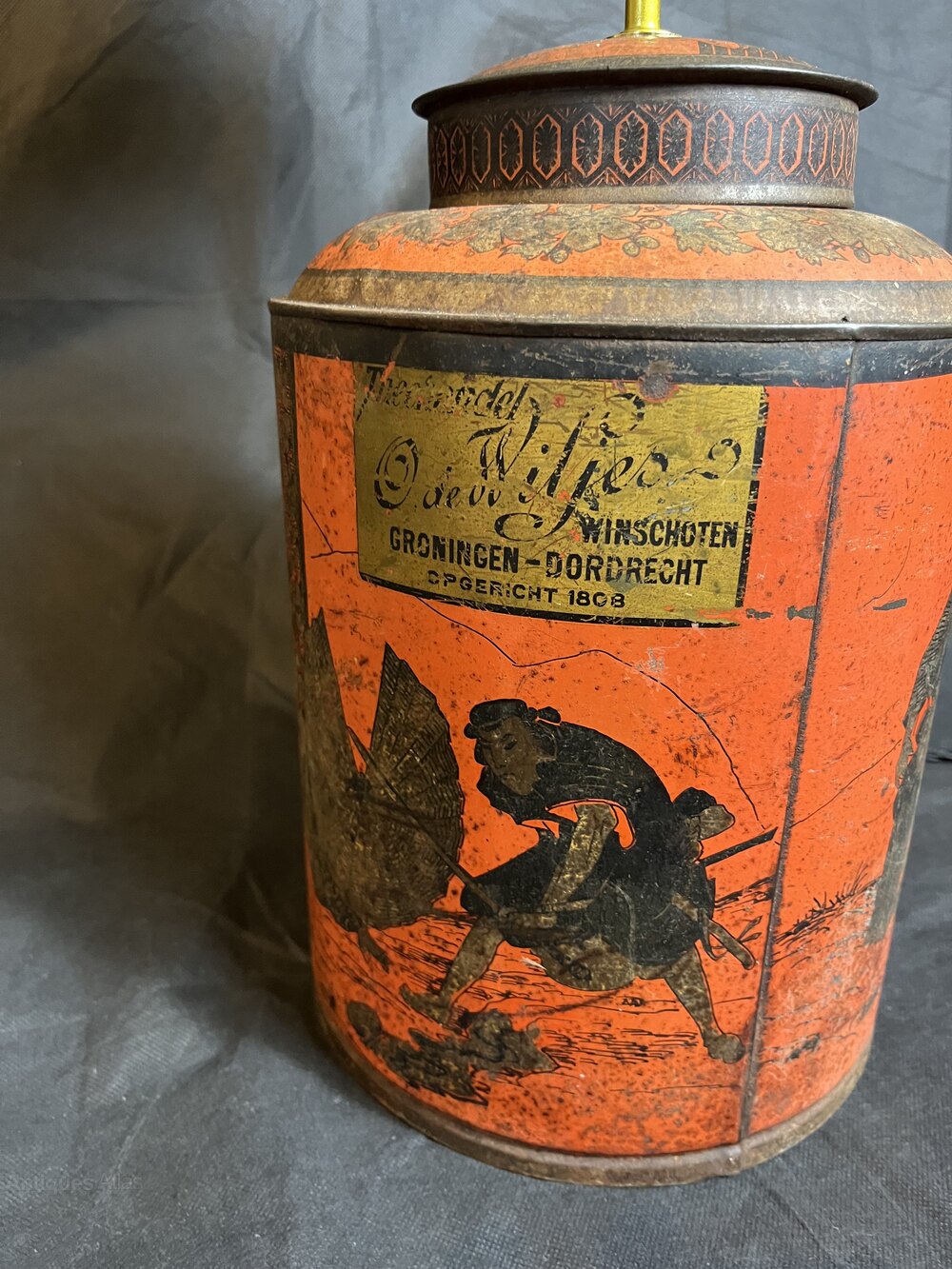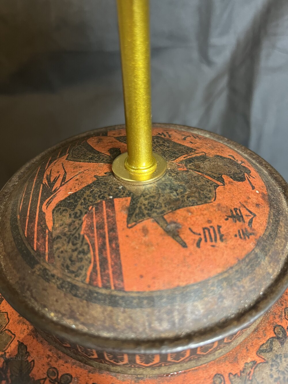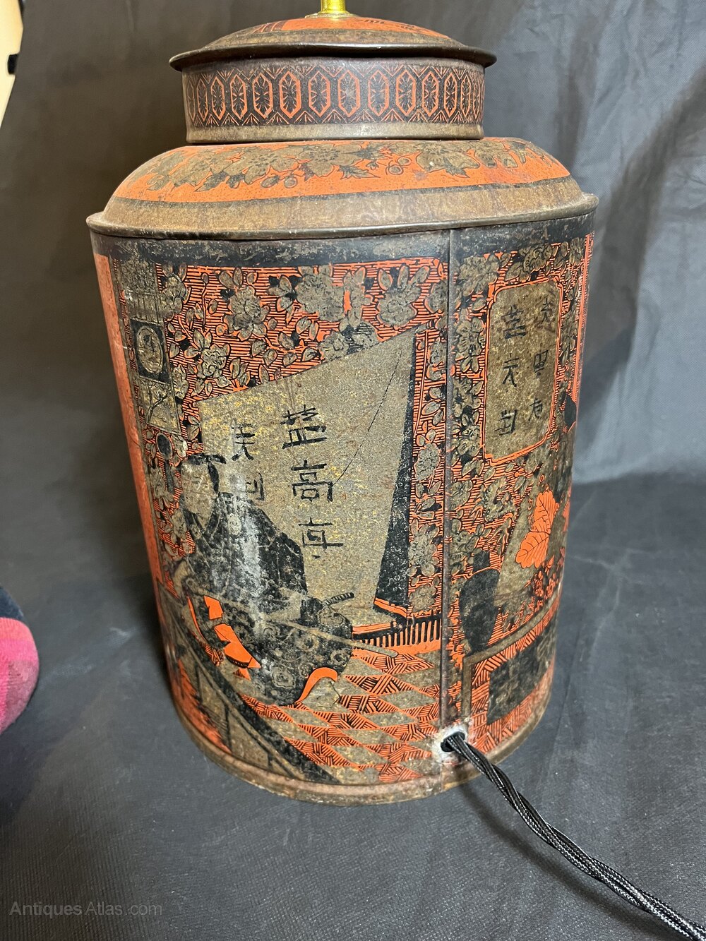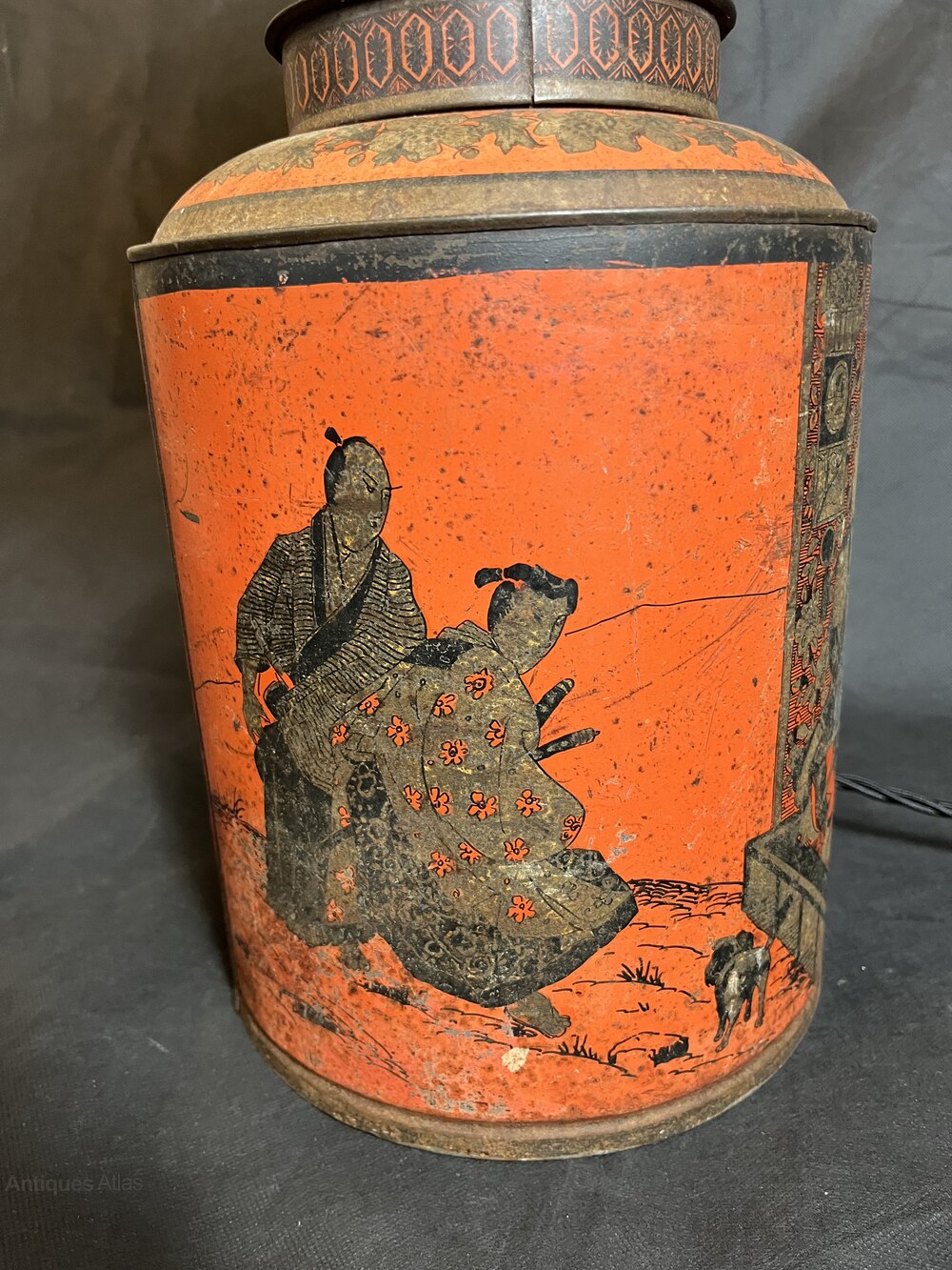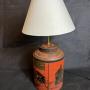 Amazing antique Japanese Style toleware tea cannister table lamp. 29 cms tall, fully rewired and PAT testedDate1930s :