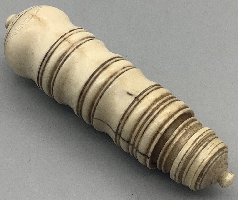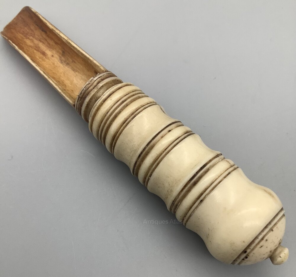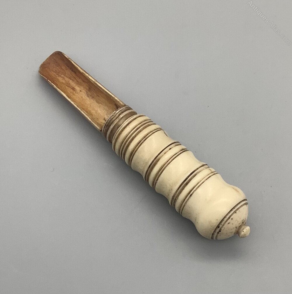 A fine and rare example of a late Georgian-era pocket apple corer, dating to the early 19th century. This compact utensil is crafted with a well-turned bone handle, shaped for comfortable use and portability, in line with typical Georgian domestic tools.The corer features a traditional bone blade, used for coring apples or similar fruits, and would have likely been carried in the pocket or sat among personal eating tools. Its simple, utilitarian form reflects the understated craftsmanship of the period.