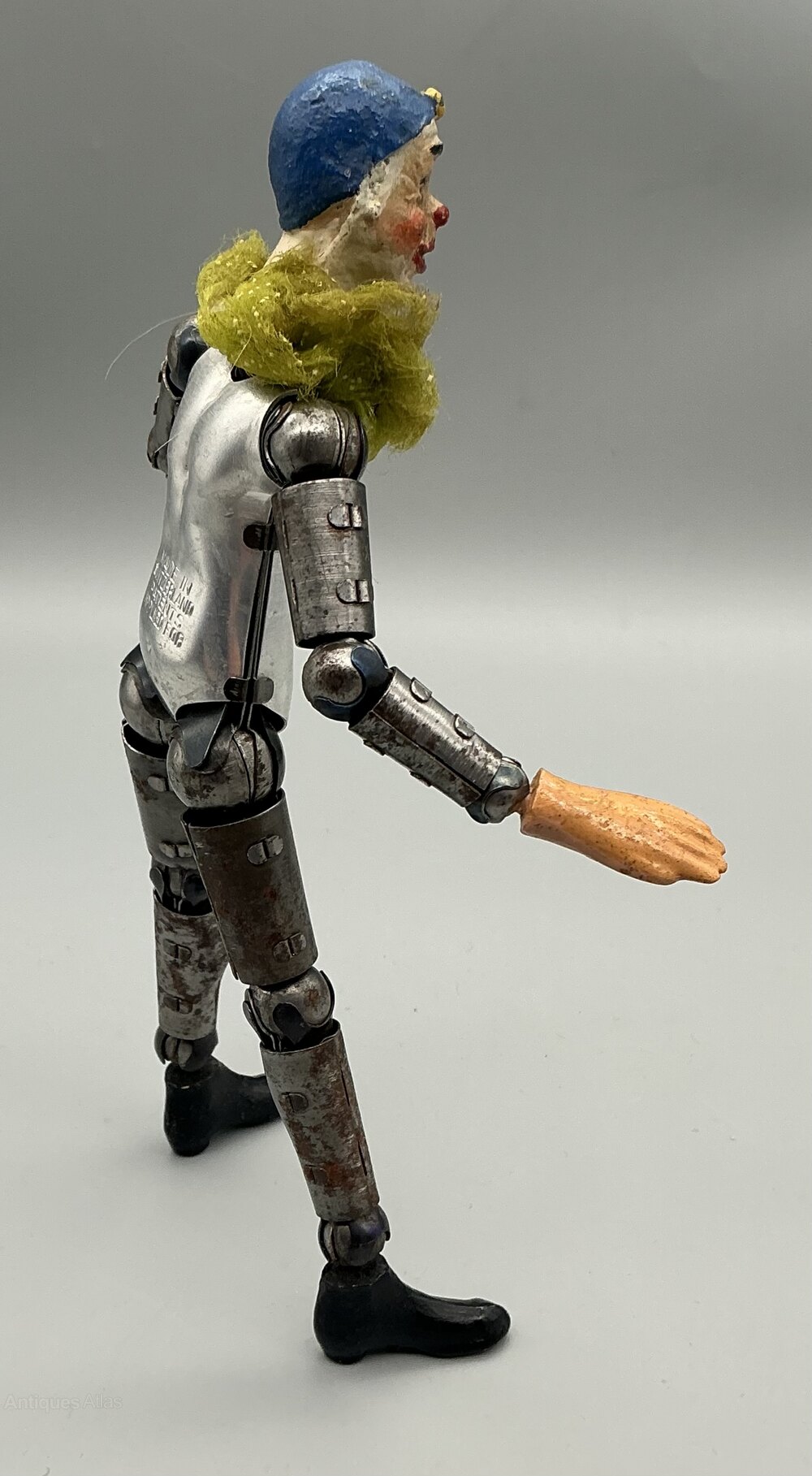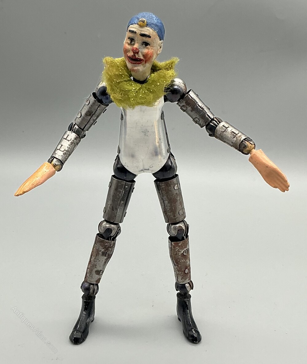 A rare Swiss jointed Pierrot metal doll by Buchere