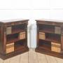 The rosewood is of notably fine quality, displaying dramatic grain and deep, warm colouration throughout the tops, sides, and bases. The polished finish enhances the natural figuring of the timber, giving the pair a refined yet substantial character. The interiors retain a complementary tone, offering an attractive contrast to the exterior framing.