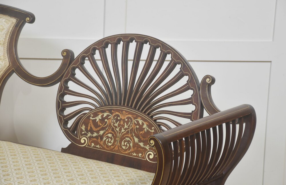 Mahogany Settee with Fan Back and Floral Marquetry