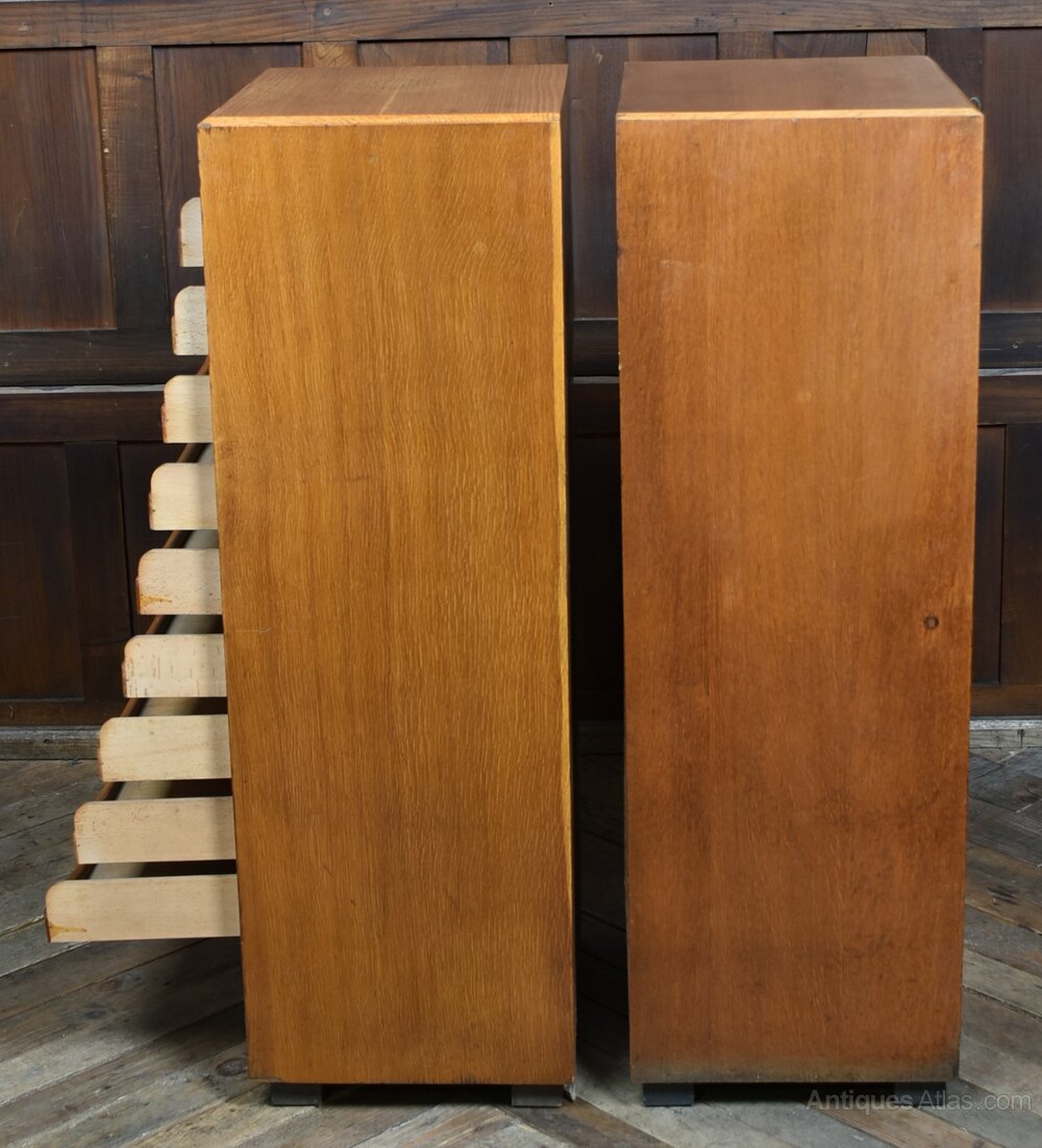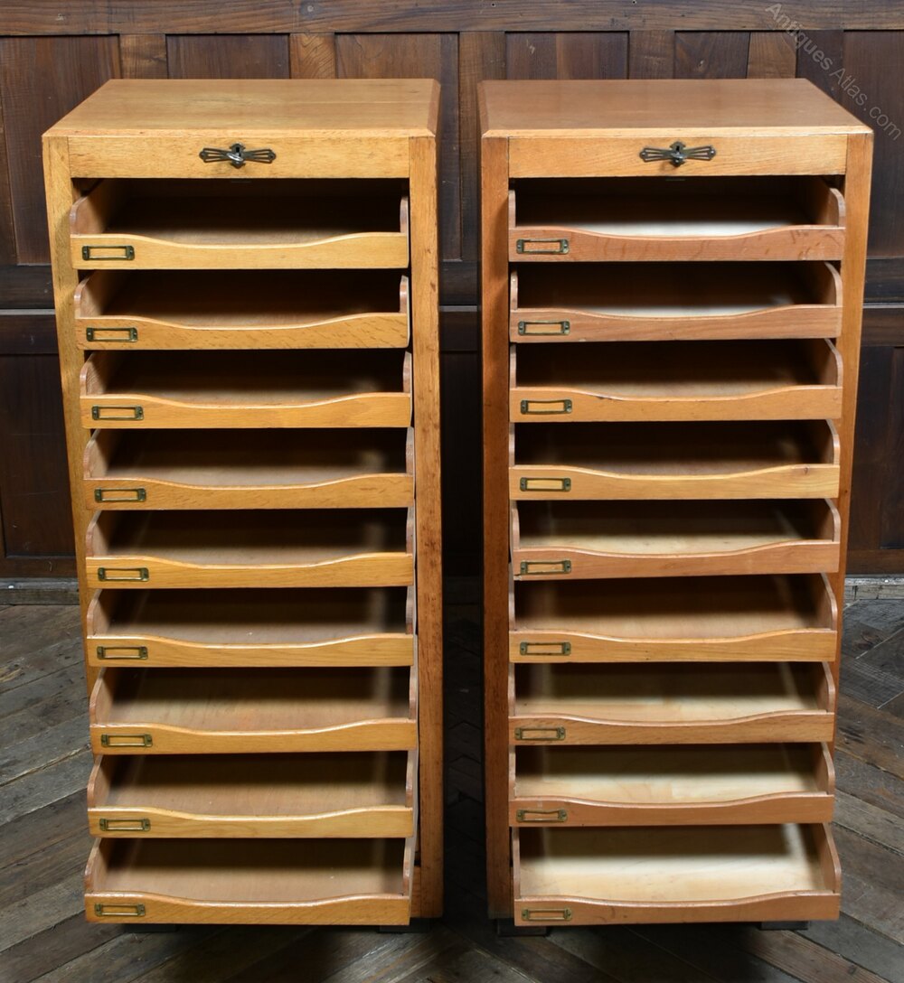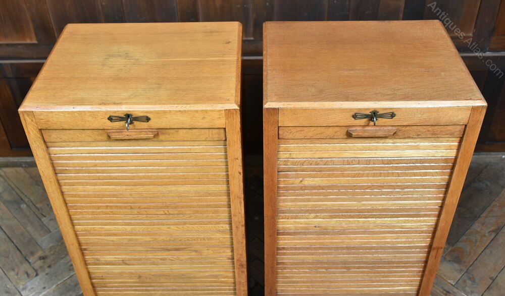 Pair Of Oak Tambour Front Filing Cabinets