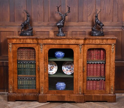 Victorian Walnut Breakfront Bookcase