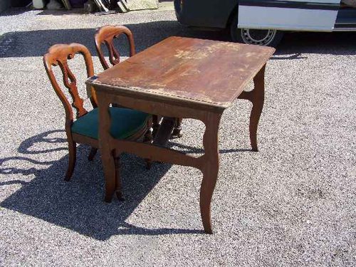 It will seat 4 as can be seen in the pictures, two on each side. The mahogany top has had some marking in the polish so the price includes for a re French polish. There are chairs available to go with this, 2 or four what ever your requirement. An unusual table that is quite nice quality and as mentioned highly useful in the right circumstances. Its not going to break the bank either. Currently in the store room awaiting its new owner, together with around 50 other tables, so lots of selection. Description30inches wide 42 inches longDimensionsWe guess early 1900s. Appears to have a bit of NouDateas017a1401Code01565 874075Contact£325 Price€372.16 $438.23 Euro & Dollar conversion rates as of 23/DEC/2025 Always confirm final price with dealer