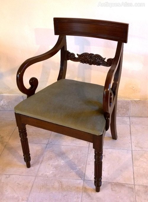 In lovely condition this good quality mahogany elbow or arm chair is very versatile. Can be used to head the dining table, sit at your desk or just be a superb looking addition piece of seating. Covered in the recent past, it would seem, the seat has many years use in it, but if you want a differing fabric we will be happy to get this done for you in your own choice of material. Boasting a gillows style leg and having a rather neat detailing on the tops of the scroll arm it is a well above average example, not quite as dark as the pictures suggest. Description21ins wide at front, 22ins deep and 34 ins high.Dimensionsfirst half of 1800sDateas017a1960Code01565 874075Contact£320 Price€365.98 $430.53 Euro & Dollar conversion rates as of 22/DEC/2025 Always confirm final price with dealer