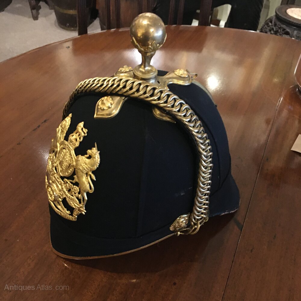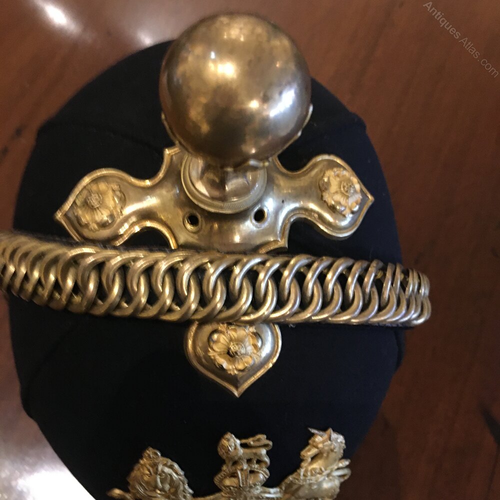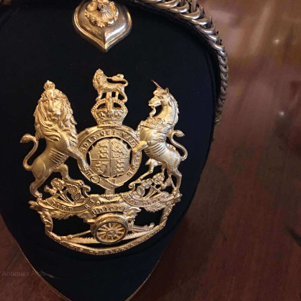 A blue cloth helmet 1890 Royal Artillery . This helmet belonged to brigadier-General Herbert Edward Stockdale D S O . See attached paperwork ask I have loads more , this helmet was bought from the family where it had been stored with other items for decades hence the condition of the helmet “I don’t think it’s ever been worn “. This guy had a distinguished career boar war 1899/1901 Gallipoli first war DSO . We researched him just ask and I will send you what I have.Shipping information