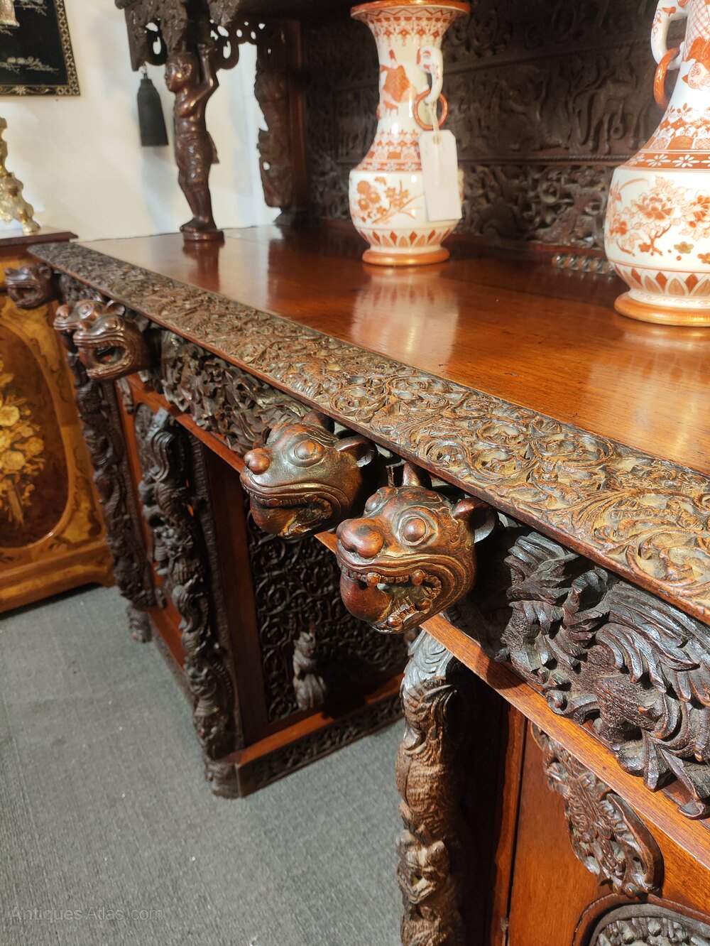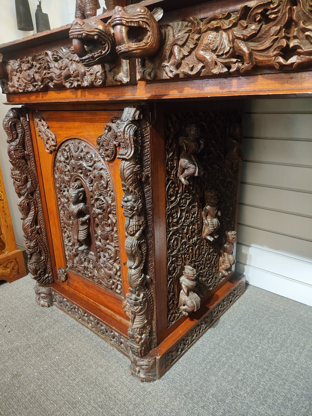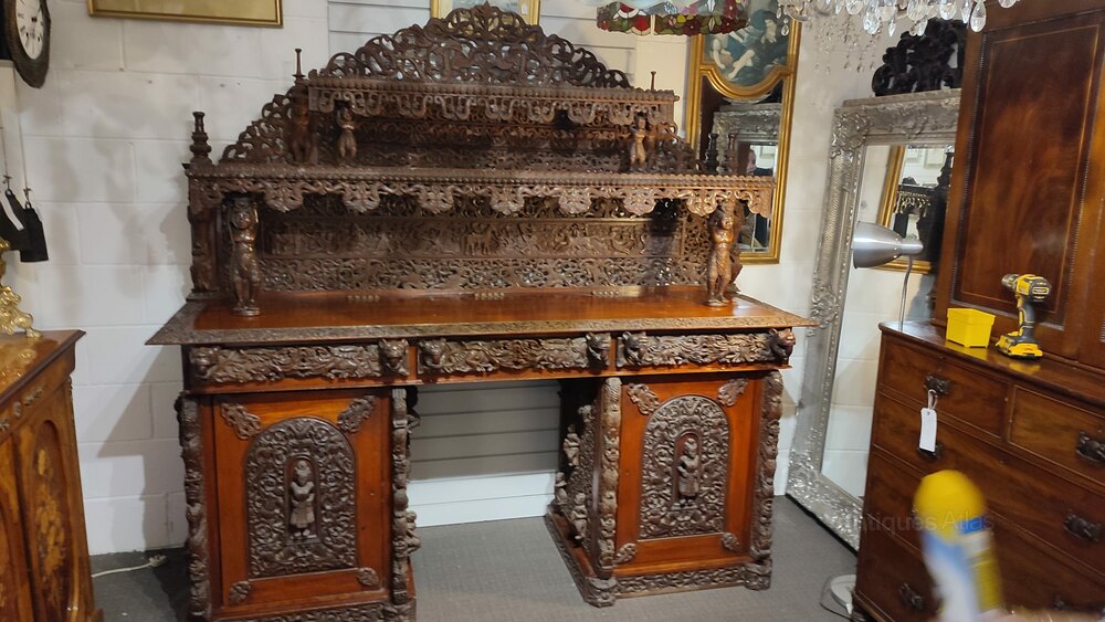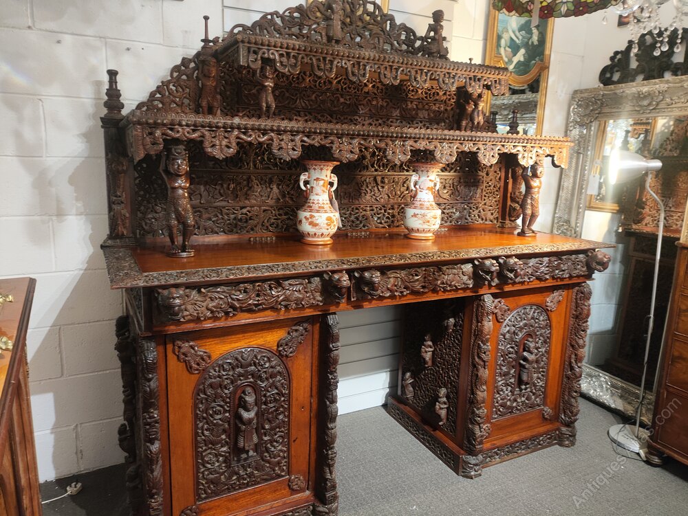 19th C Burmese carved buffet sideboard