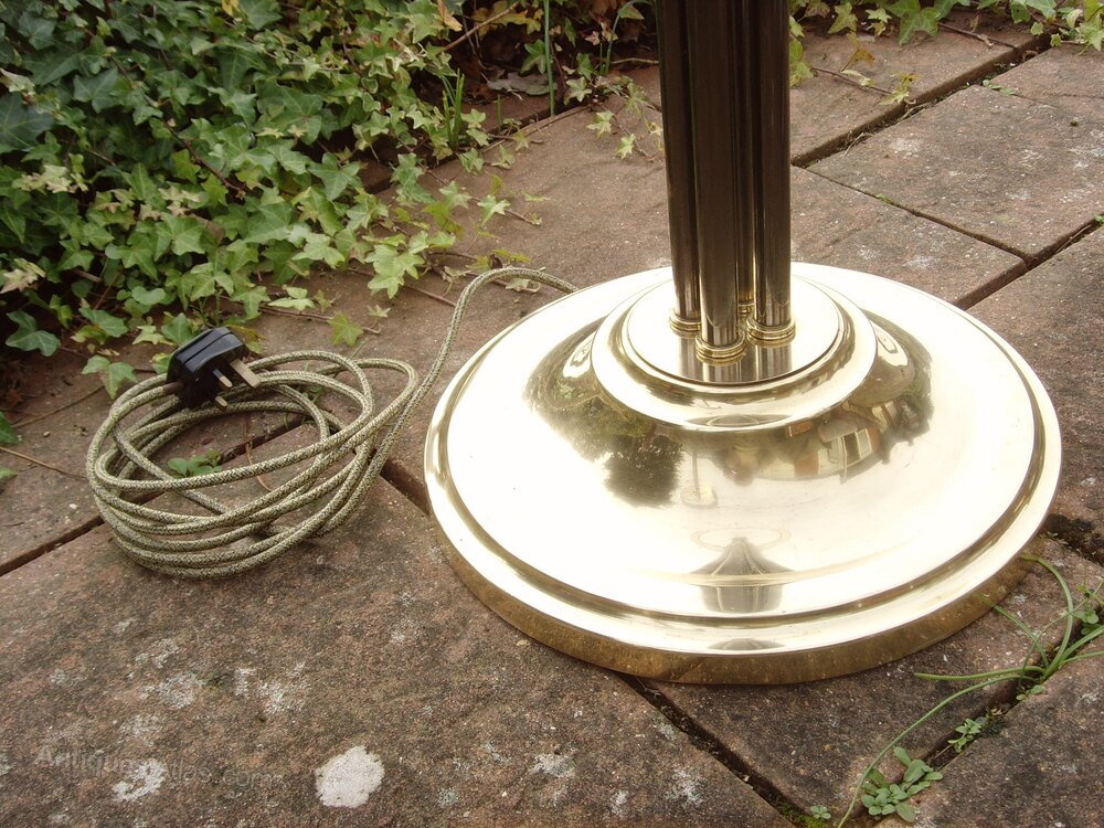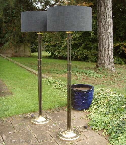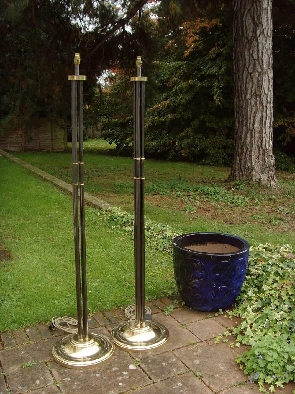 The lamps have been newly rewired in a specialist gold and grey fabric covered circular flex to tone with the lamps. They have new safer switched lampholders, shade carriers and plugs. As will all electrical items, it is recommended that they be checked by a qualified electrician before use.