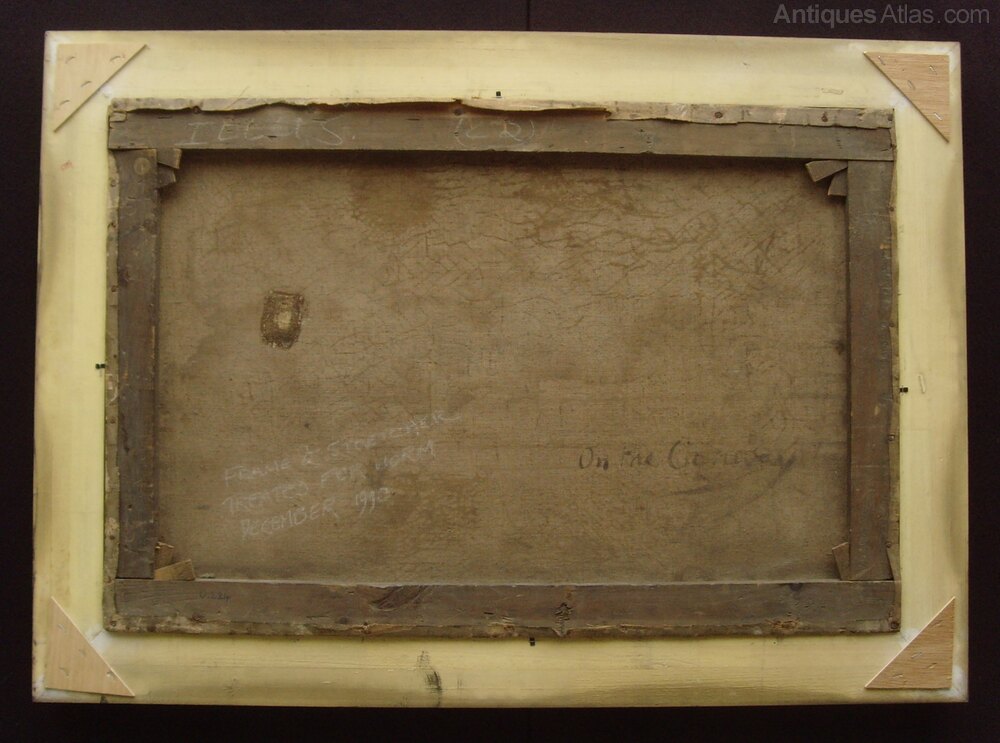 Condition: Very good condition. There is one small repair to the canvas, which is clean and taut. There is a little craquelure and slight stretcher marks consistent with age. The frame is new.