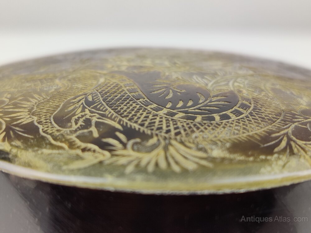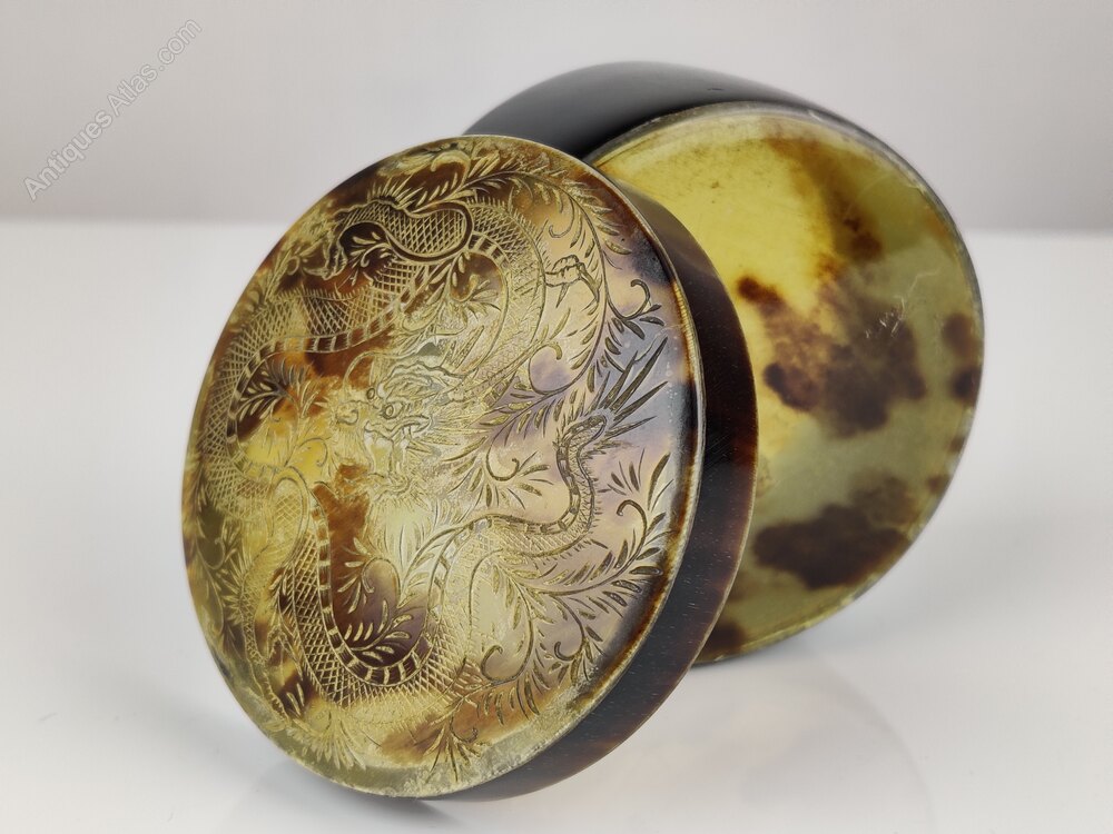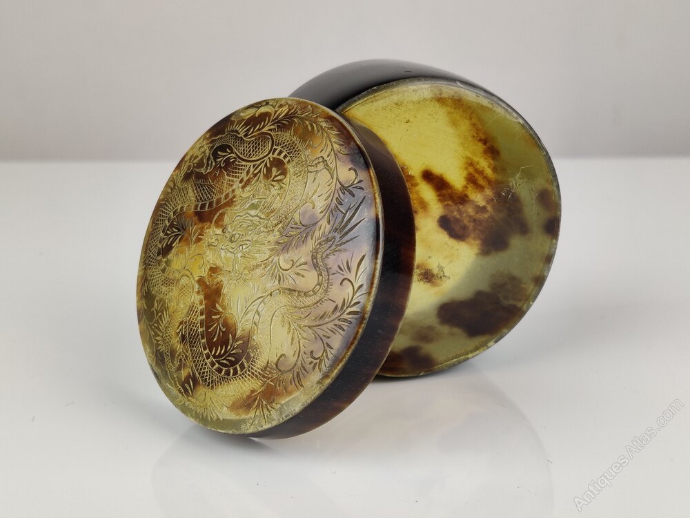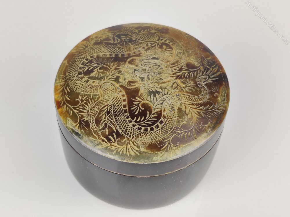 Vintage Chinese Tortoise Shell Trinket with a Chin long dragon and carved into the lid Circa 1920'sIn lovely condition, a great addition to any home or gift for someone special.