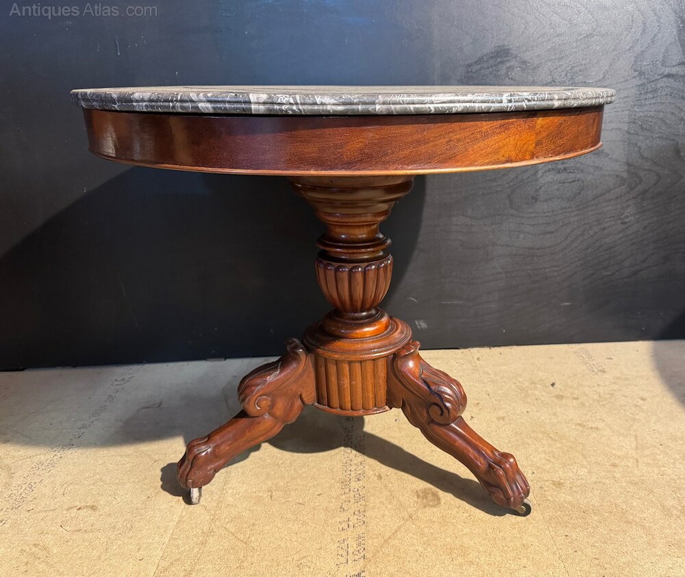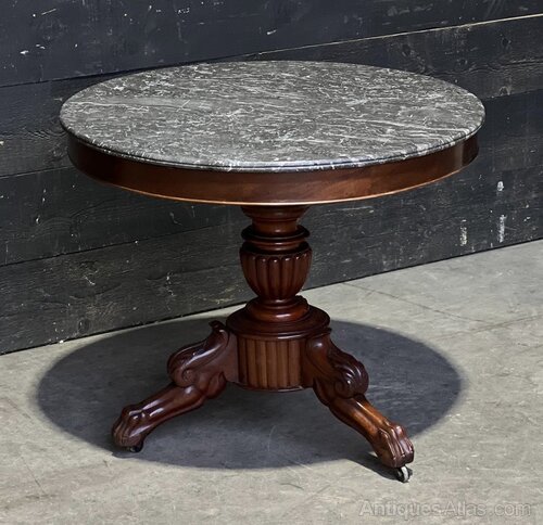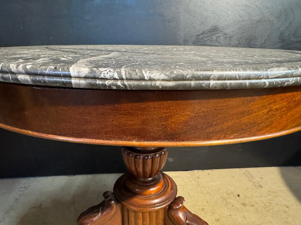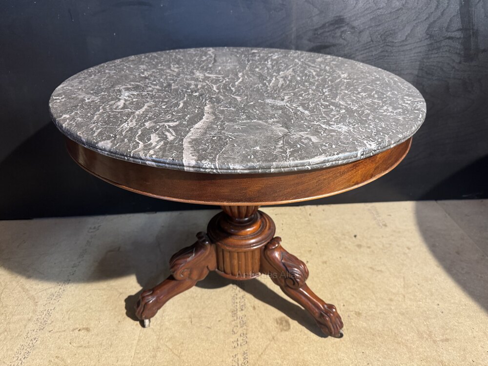 A lovely French Gueridon Table dating to the mid 19th Century. Variegated Grey original marble top with mahogany Base. In overall excellent original condition for the home.Height 66 cm
