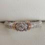 A vintage unusual diamond solitaire ring. Size NThe single round-cut diamond (ca 2mm) illusion set in pierced white gold crown mount with yellow gold collars on a decoratively chased white gold band - marked 10k. Probably US about 1990. 2.2 grams